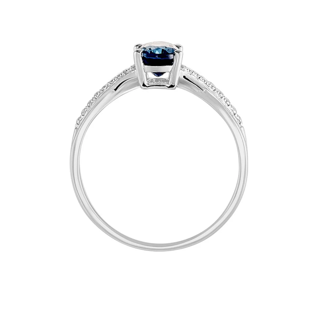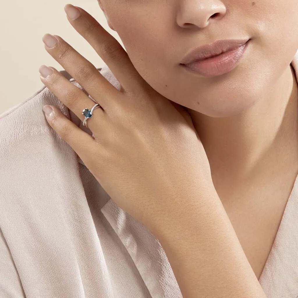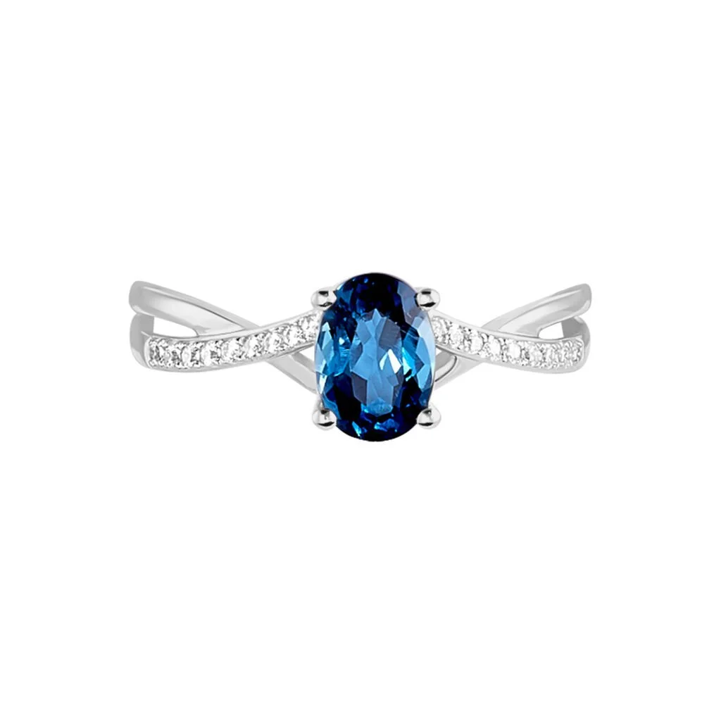 Bague Or Blanc 375/1000 Topaze London Blue Accompagnee Oxydes De Zirconium