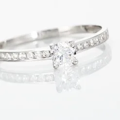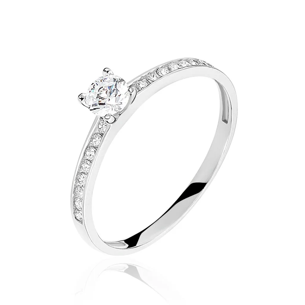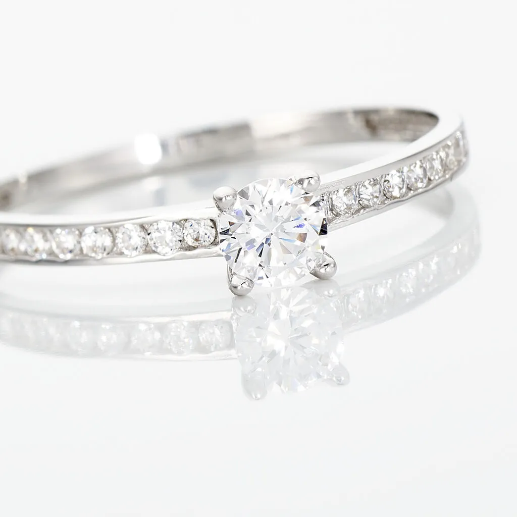 Bague Or Blanc 375/1000 Oxyde De Zirconium Blanc Central Accompagne D’oxydes De Zirconium Serti Rail