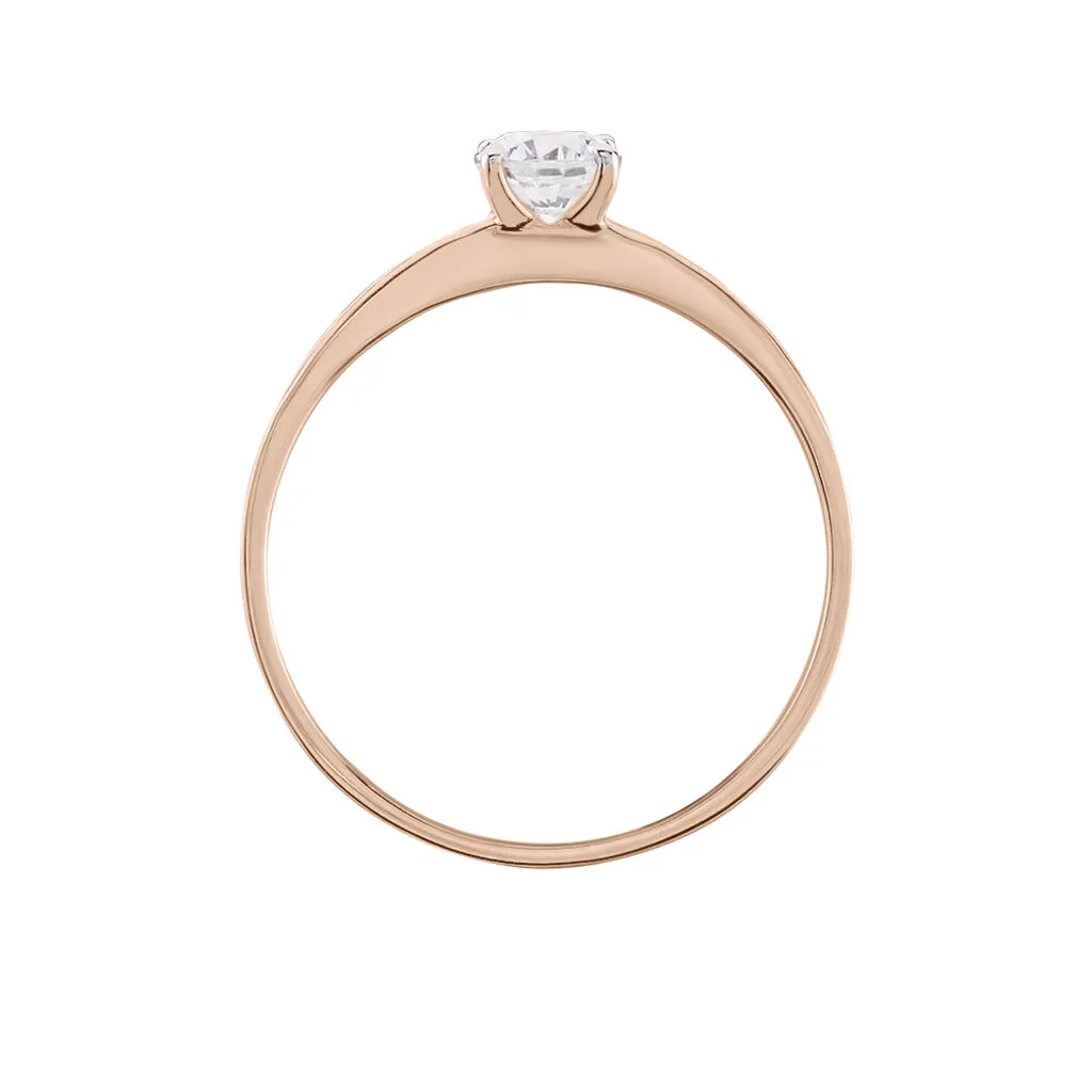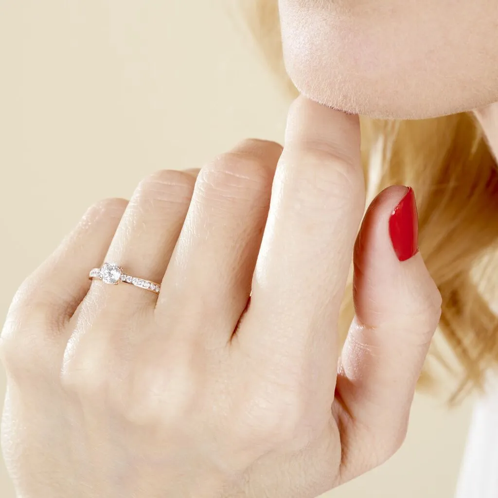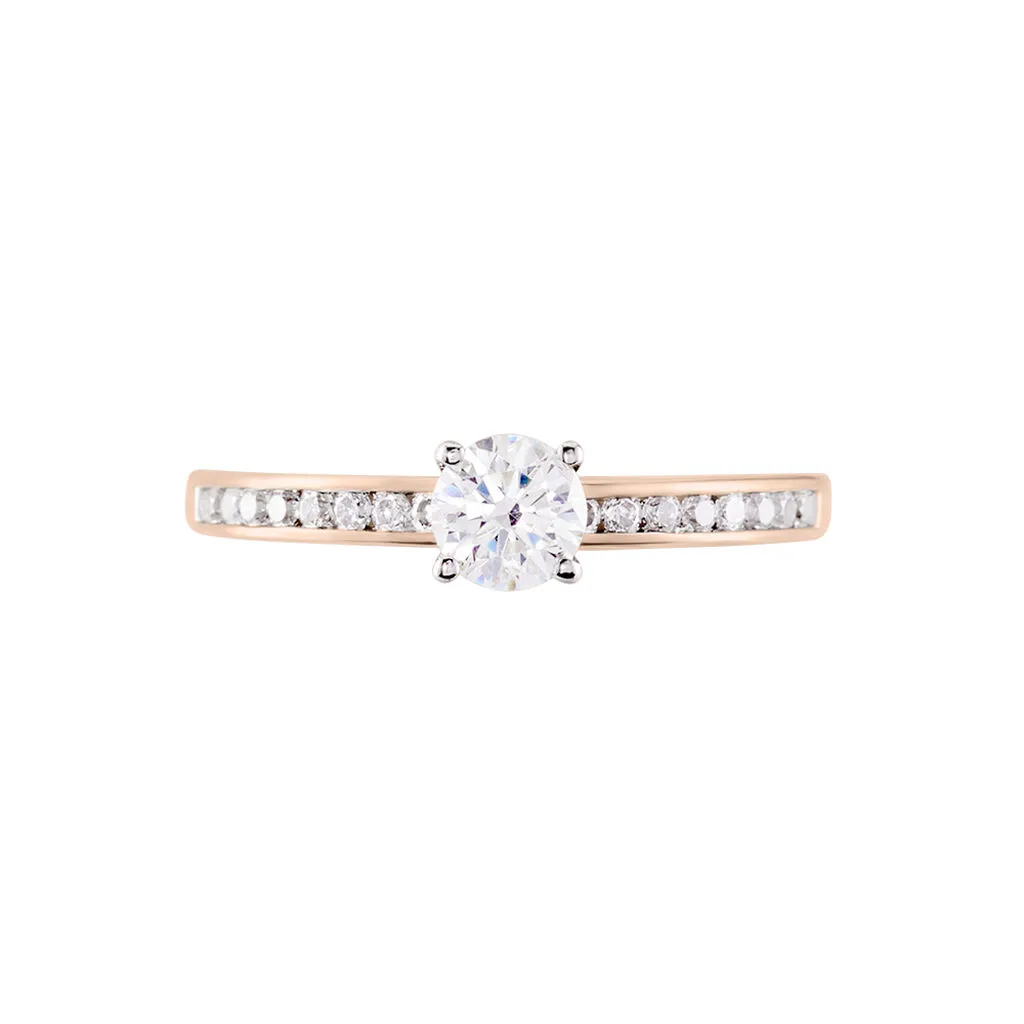 Bague Or Rose 375/1000 Oxyde De Zirconium Blanc Central Accompagne D’oxydes De Zirconium Serti Rail