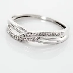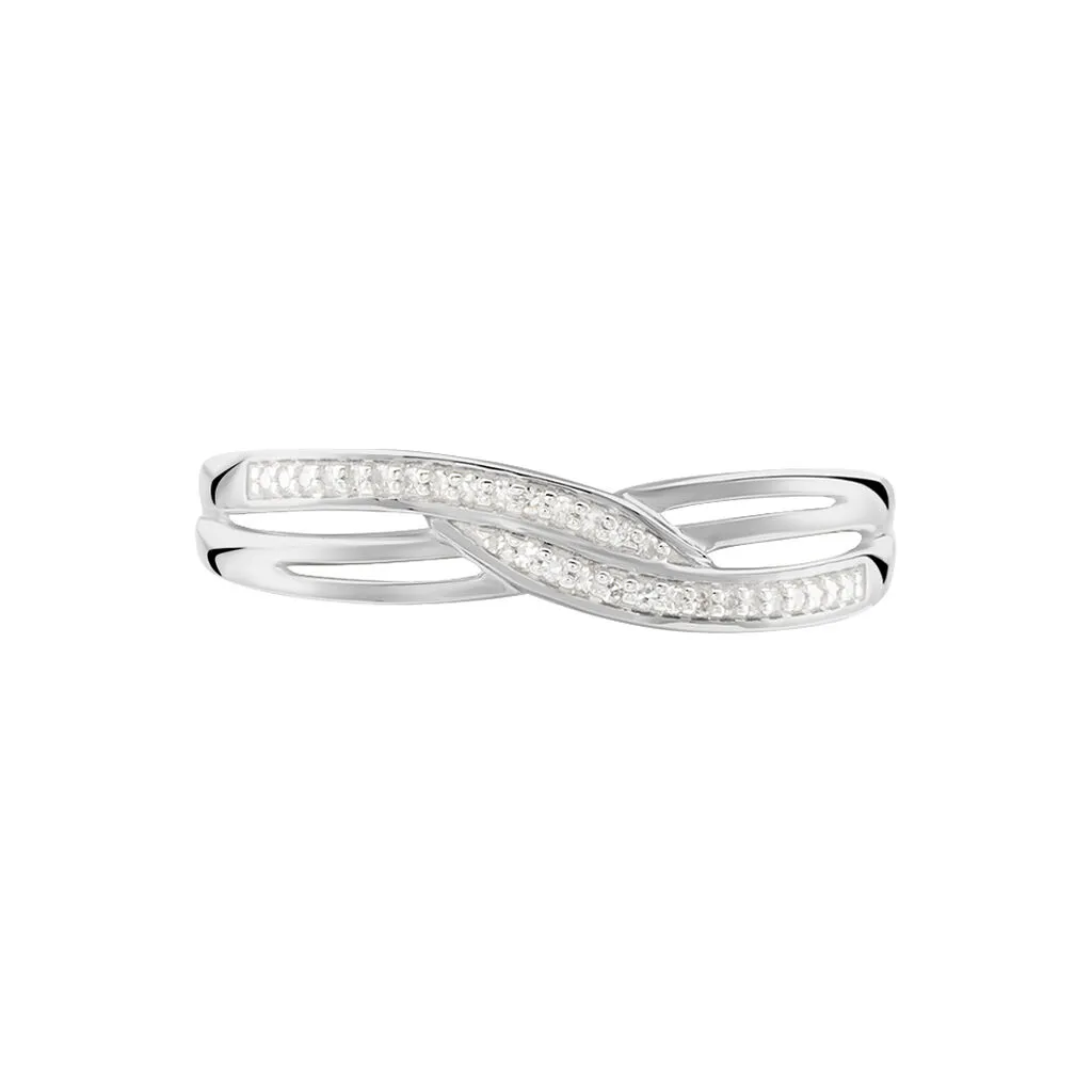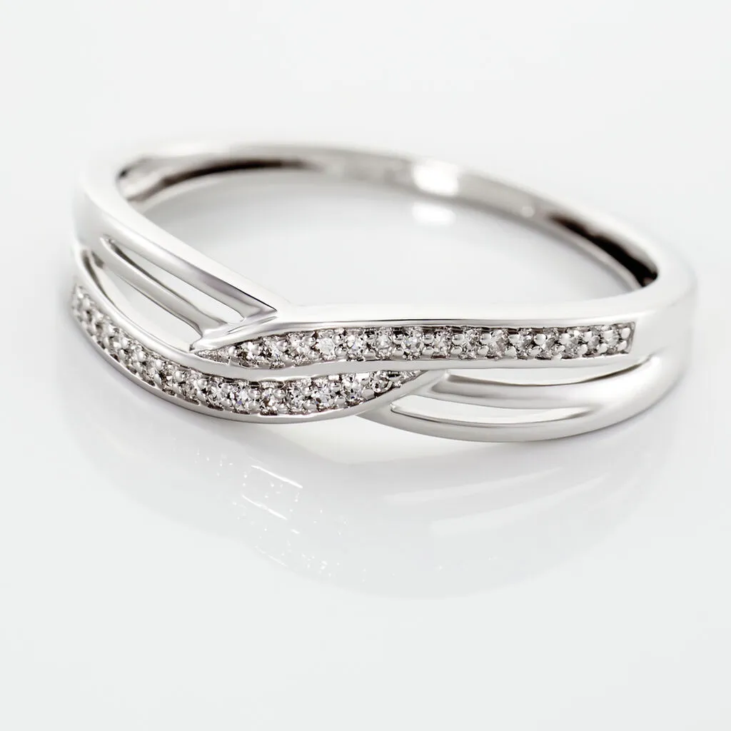 Bague Or Blanc 375/1000 Forme Entrelacée Pavage Diamants