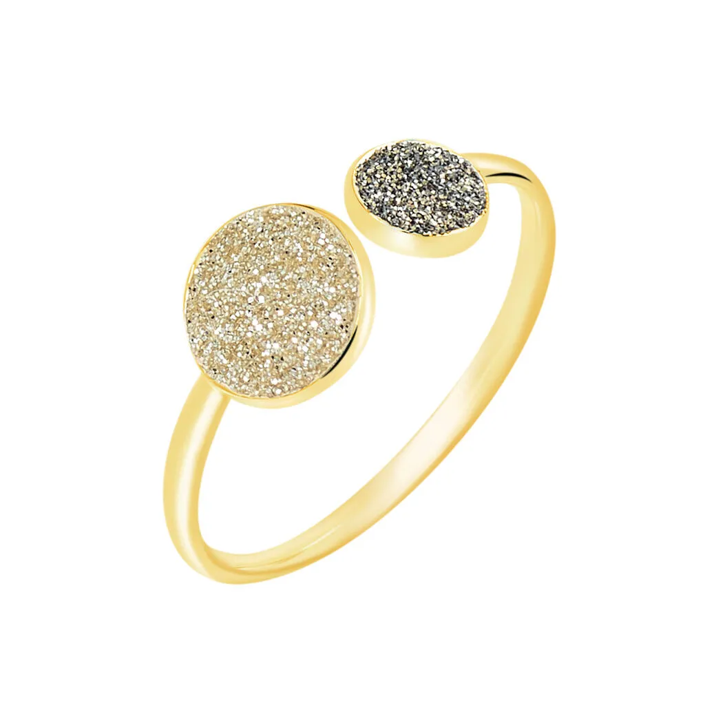 Bague Or Jaune 375/1000 Double Pastilles Dore Et Bronze