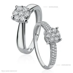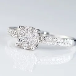 Bague Or Blanc 750/1000 Diamants Synthetique Multi Pierres 0.39cts