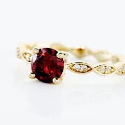 Bague Plaqué Or Jaune Solitaire Oxyde De Zirconium Rouge 4 Griffes Pavage Oxydes De Zirconium