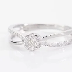 Bague Or Blanc 375/1000 Diamant Multi Pierre Effet Chou Central Corps De Bague Accompagne Croise Diamant 0.25cts