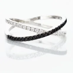 Bague Argent 925/1000 Croisee Pavage Oxydes De Zirconium Blancs Et Noirs