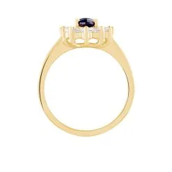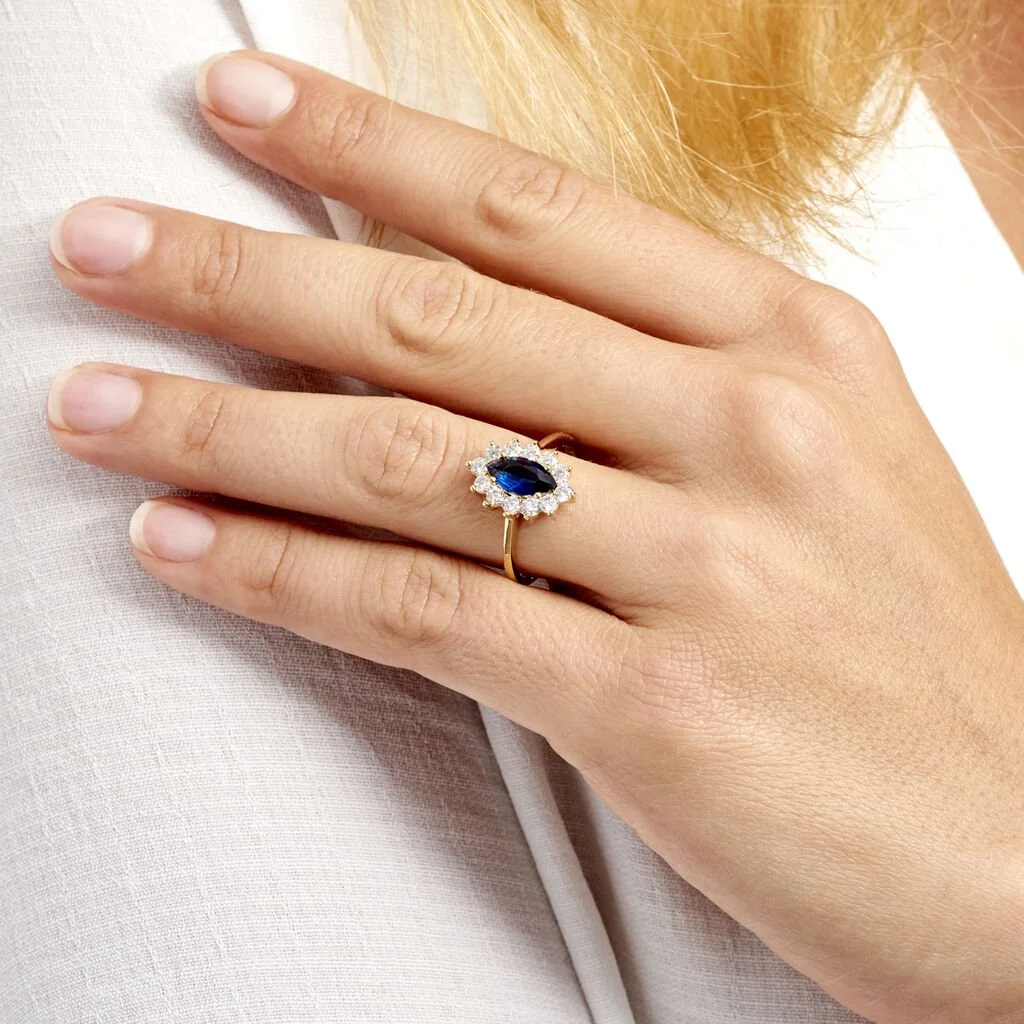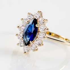 Bague Plaqué Or Jaune Entourage Marguerite Oxydes De Zirconium Pierre Bleue Centrale Forme Navette