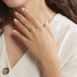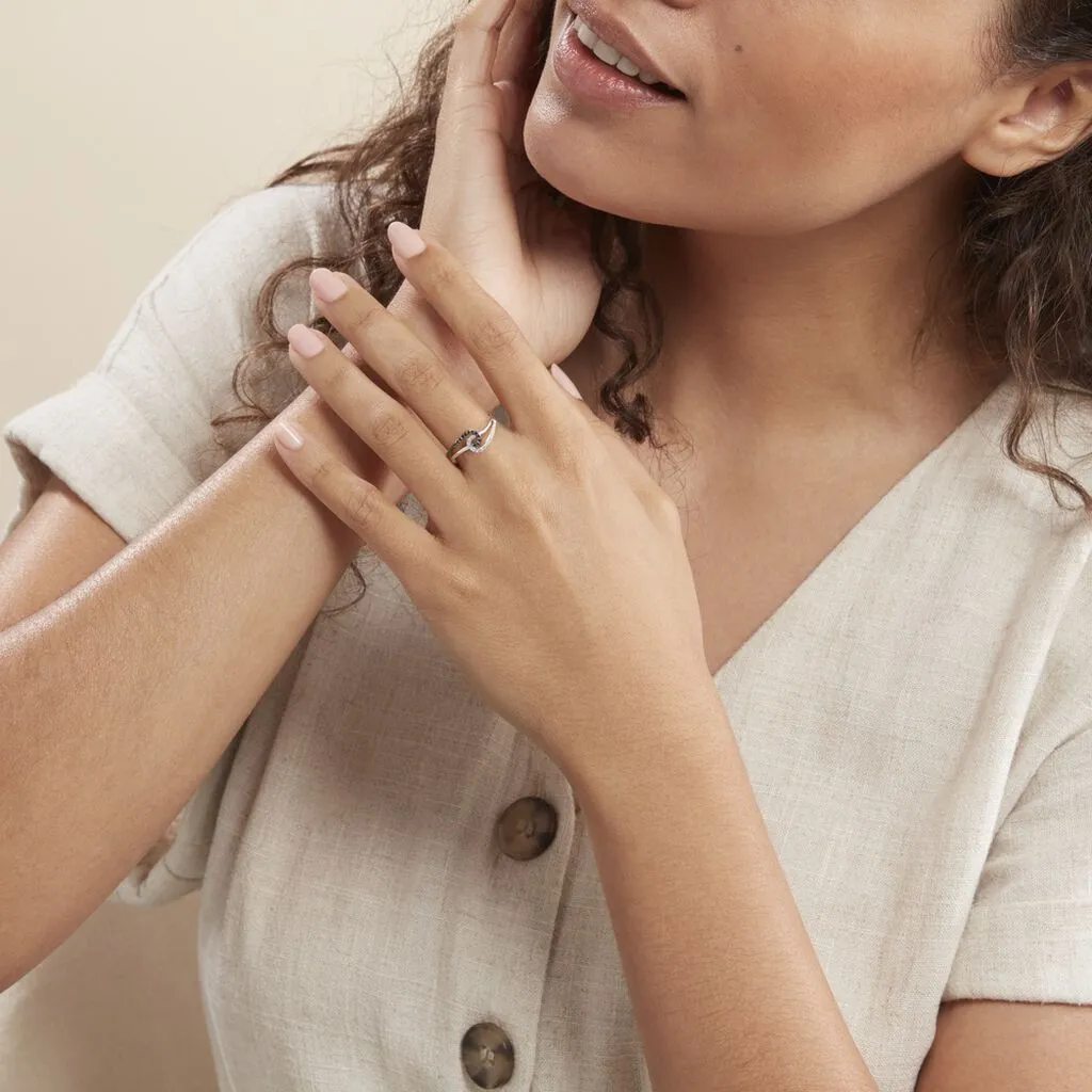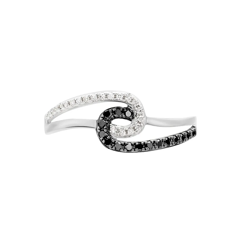 Bague Or Blanc 375/1000 Vagues Entrelacées Diamants Blancs Diamants Noirs