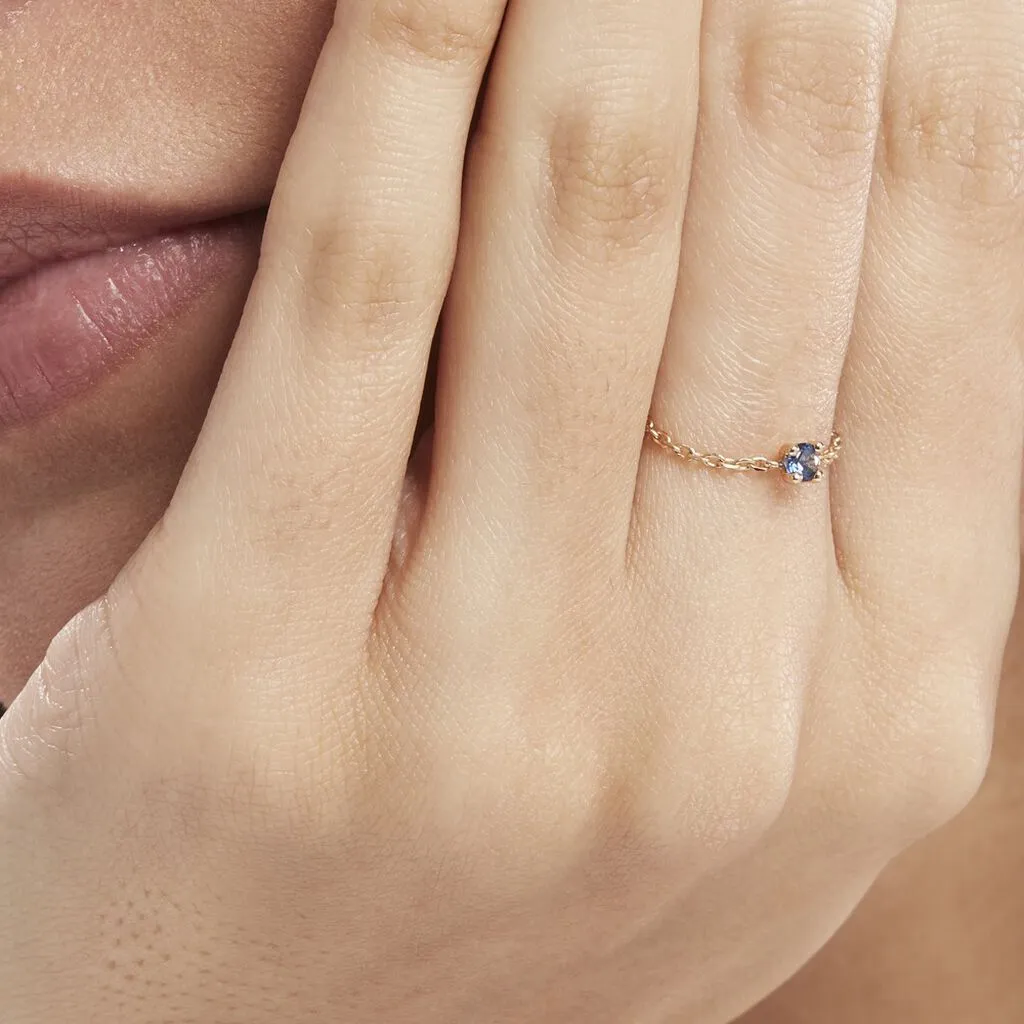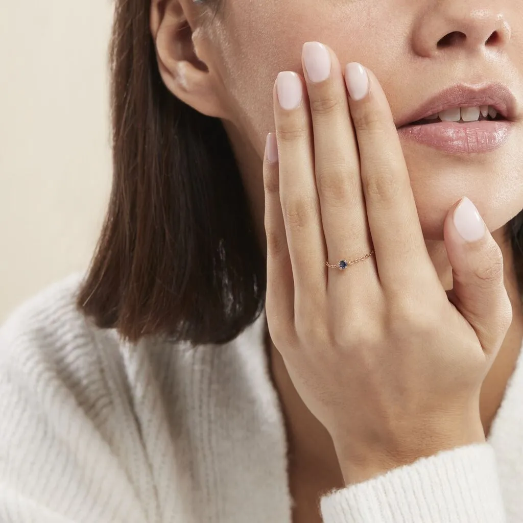 Bague Chaine Plaqué Or Mahia Oxyde De Zirconium Bleu Maille Forcat