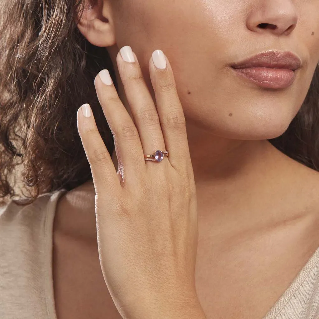 Bague Or Rose 375/1000 Amethyste Ovale Corps De Bague Pavage Oxydes De Zirconium