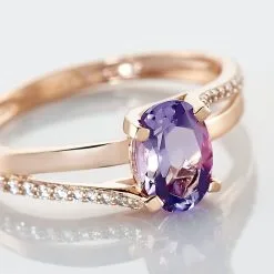 Bague Marie-eva Or Rose Amethyste Et Oxyde De Zirconium
