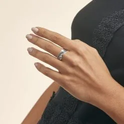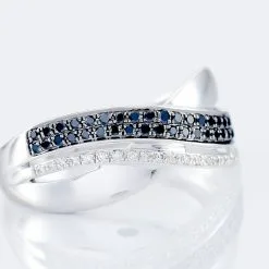 Bague Or Blanc 375/1000 Pavage Ruban Diamants Blancs Et Noirs Merlin