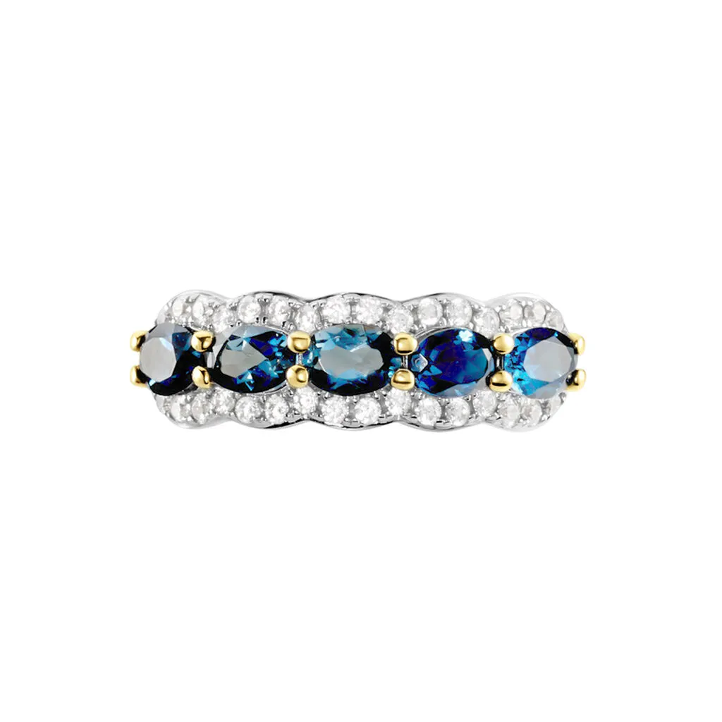 Bague Multipierres Or Jaune 375/1000 Topaze London Blue Serti Griffes