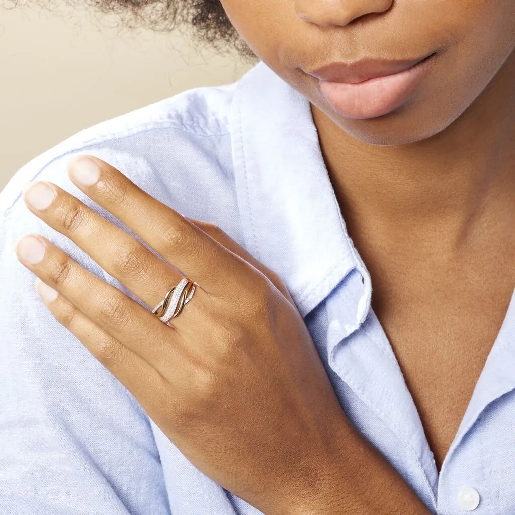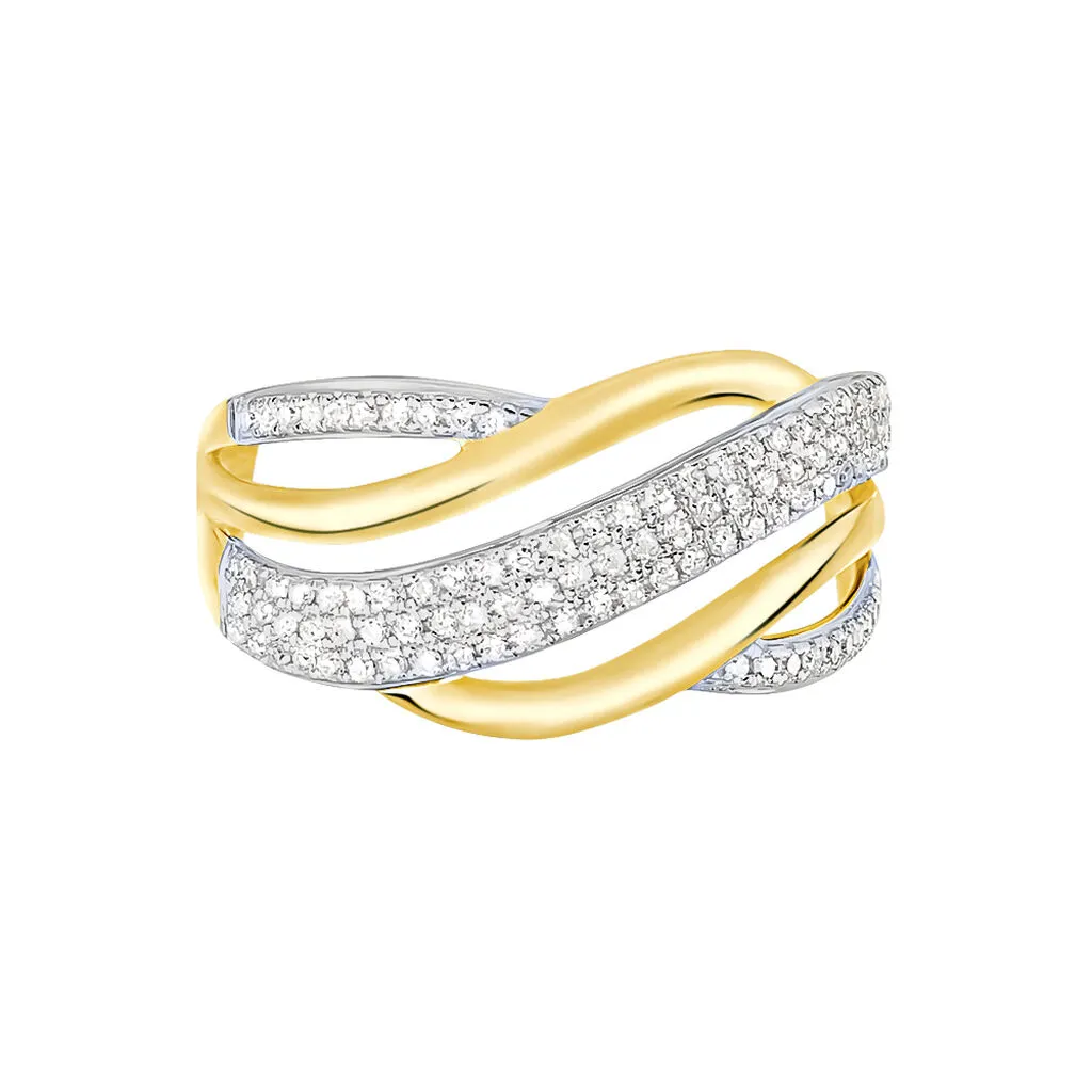Bague Or Jaune 375/1000 Forme Vagues Pavees Diamants