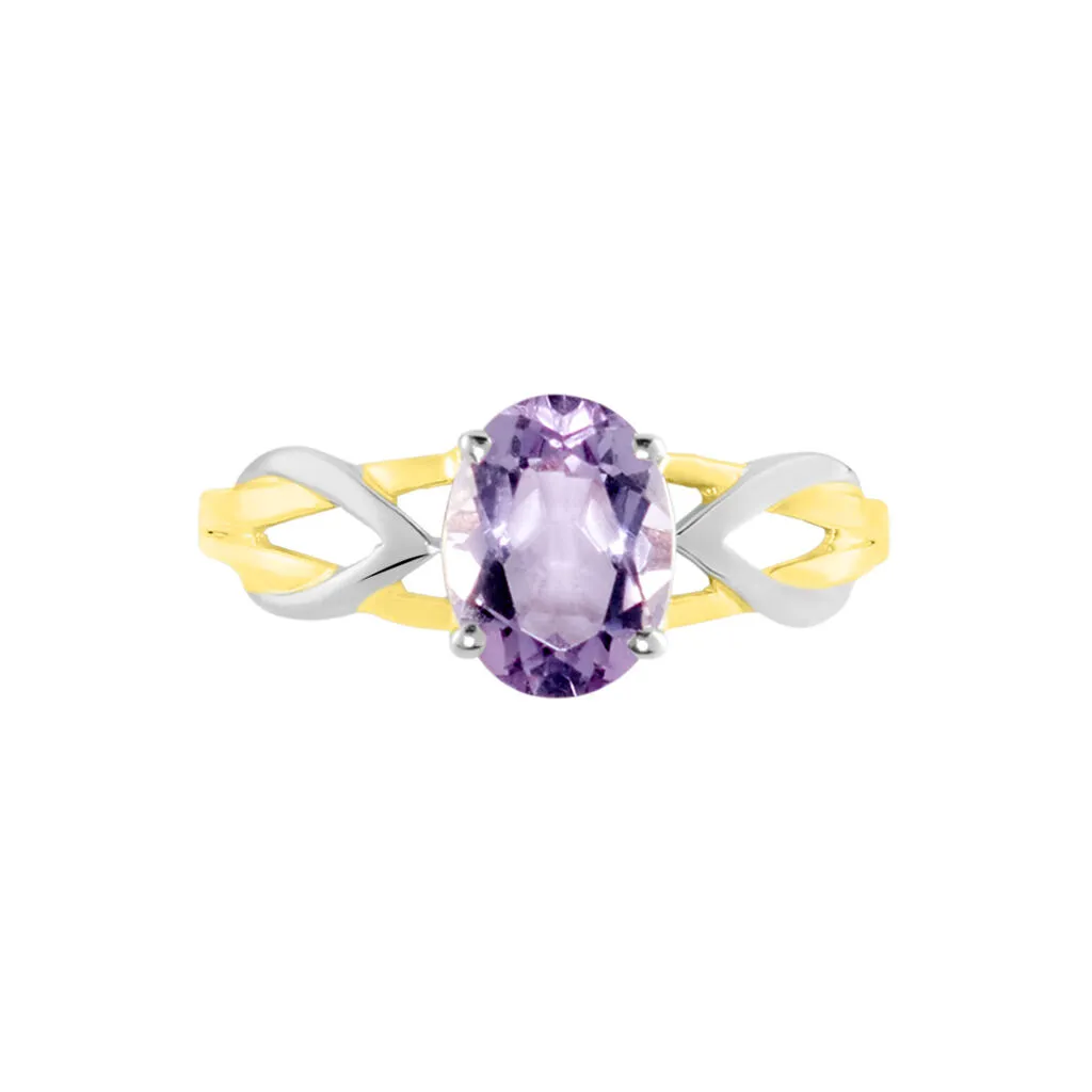 Bague Or Bicolore 375/1000 Améthyste Ovale Sertie Griffes