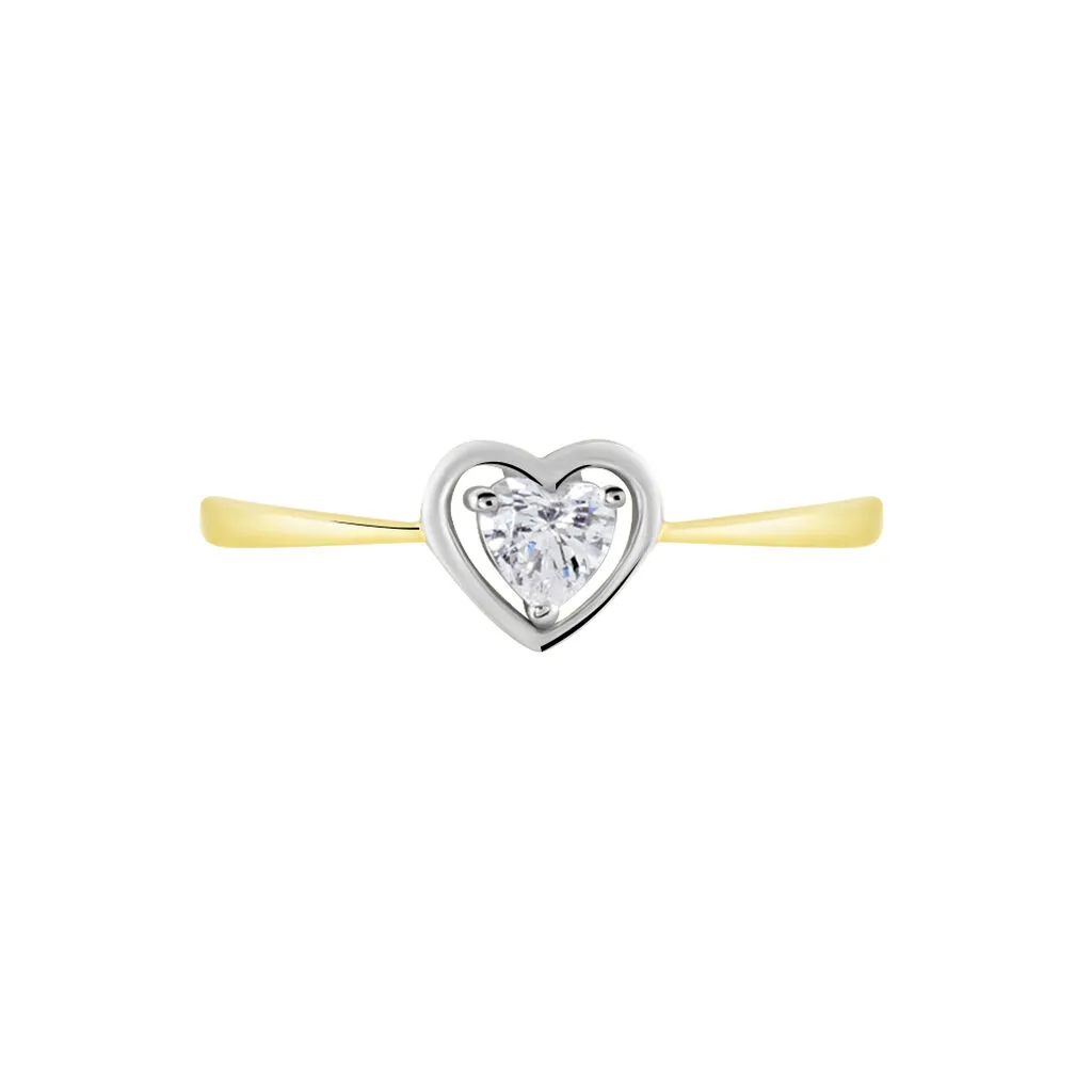 Bague Or Bicolore 375/1000 Forme Cœur Et Oxyde De Zirconium Central