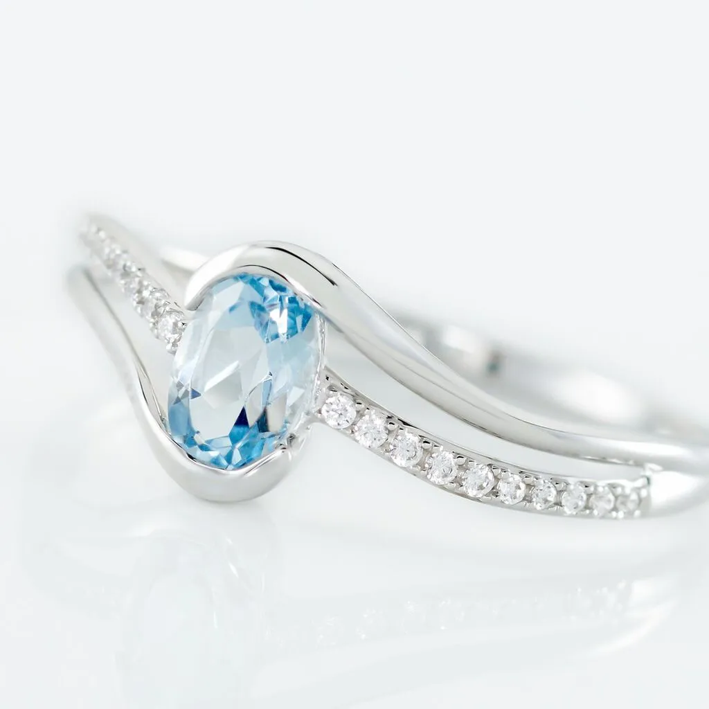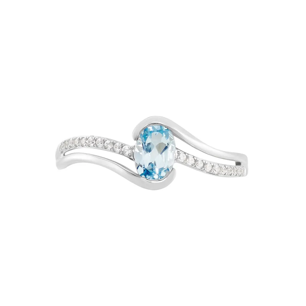 Bague Solitaire Accompagné Or Blanc 375/1000 Topaze 0.5cts Serti Griffes
