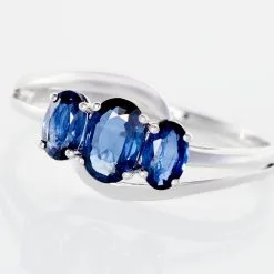 Bague Or Blanc 375/1000 Trilogie Saphirs Corps De Bague Forme Vague