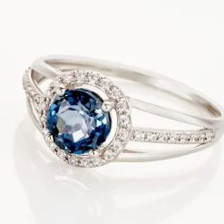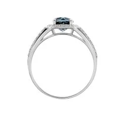 Bague Or Blanc 375/1000 Topaze London Blue 1.04 Cts Serti Griffes Entourage Et Accompagnee D’oxydes De Zirconium