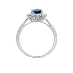 Bague Or Blanc 375/1000 Marguerite Topaze London Blue Entourage Oxydes De Zirconium