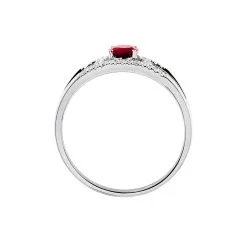 Bague Or Blanc 375/1000 Rubis Ovale Pavage Diamants
