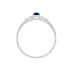 Bague Or Blanc 375/1000 Saphir Central Forme Ovale Accompagne Diamants Taille Baguette