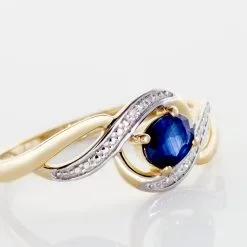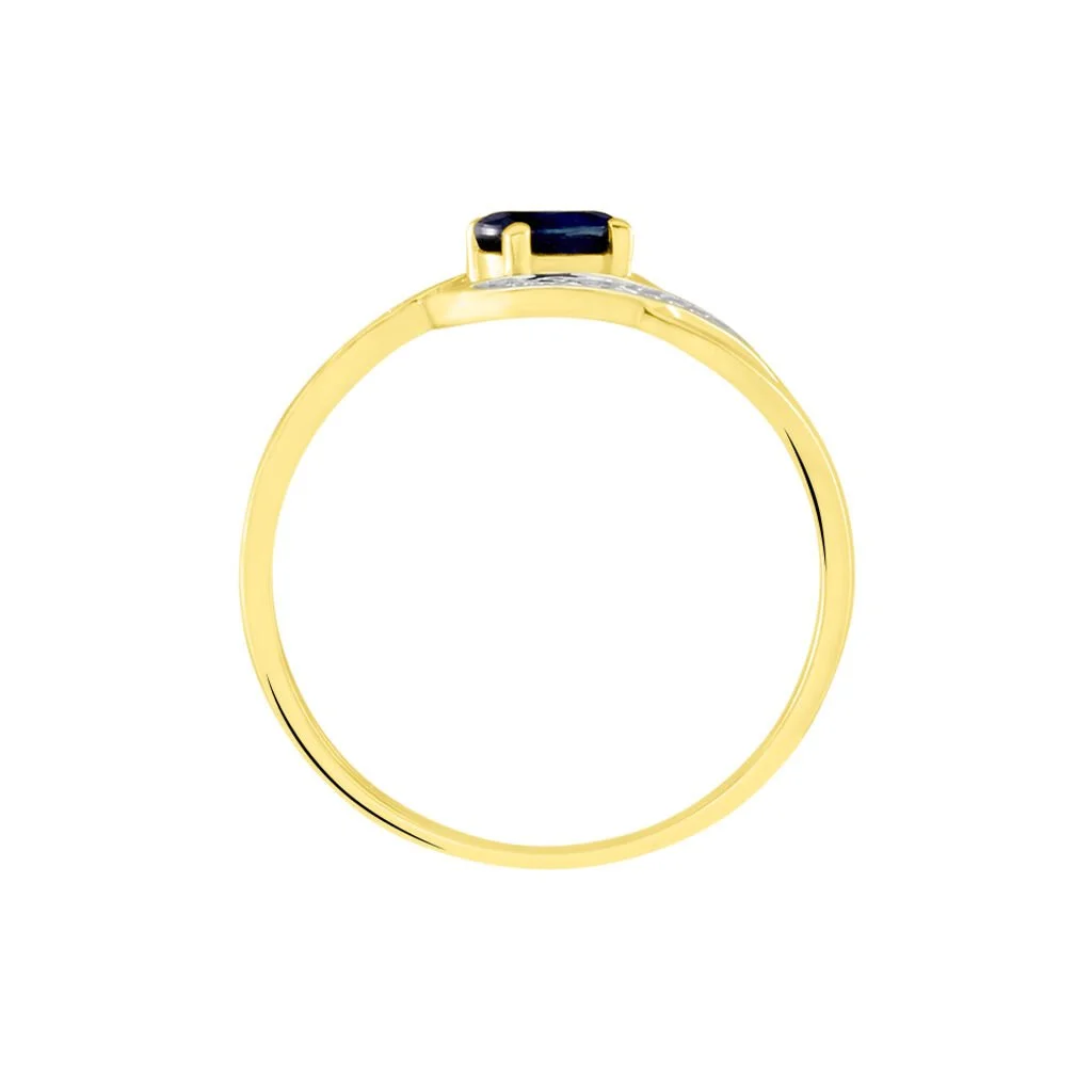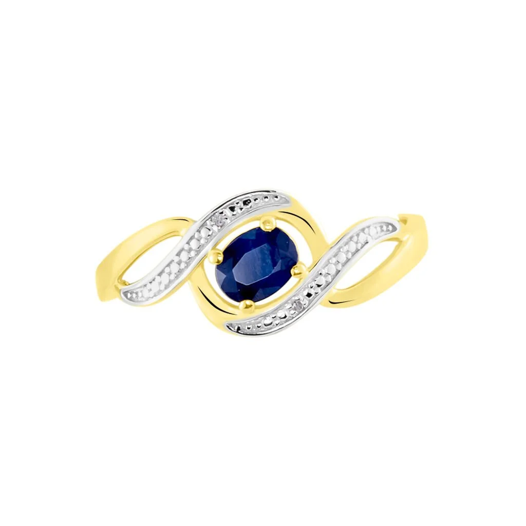 Bague Or Jaune 375/1000 Forme Vague Saphir Ovale Et Diamants