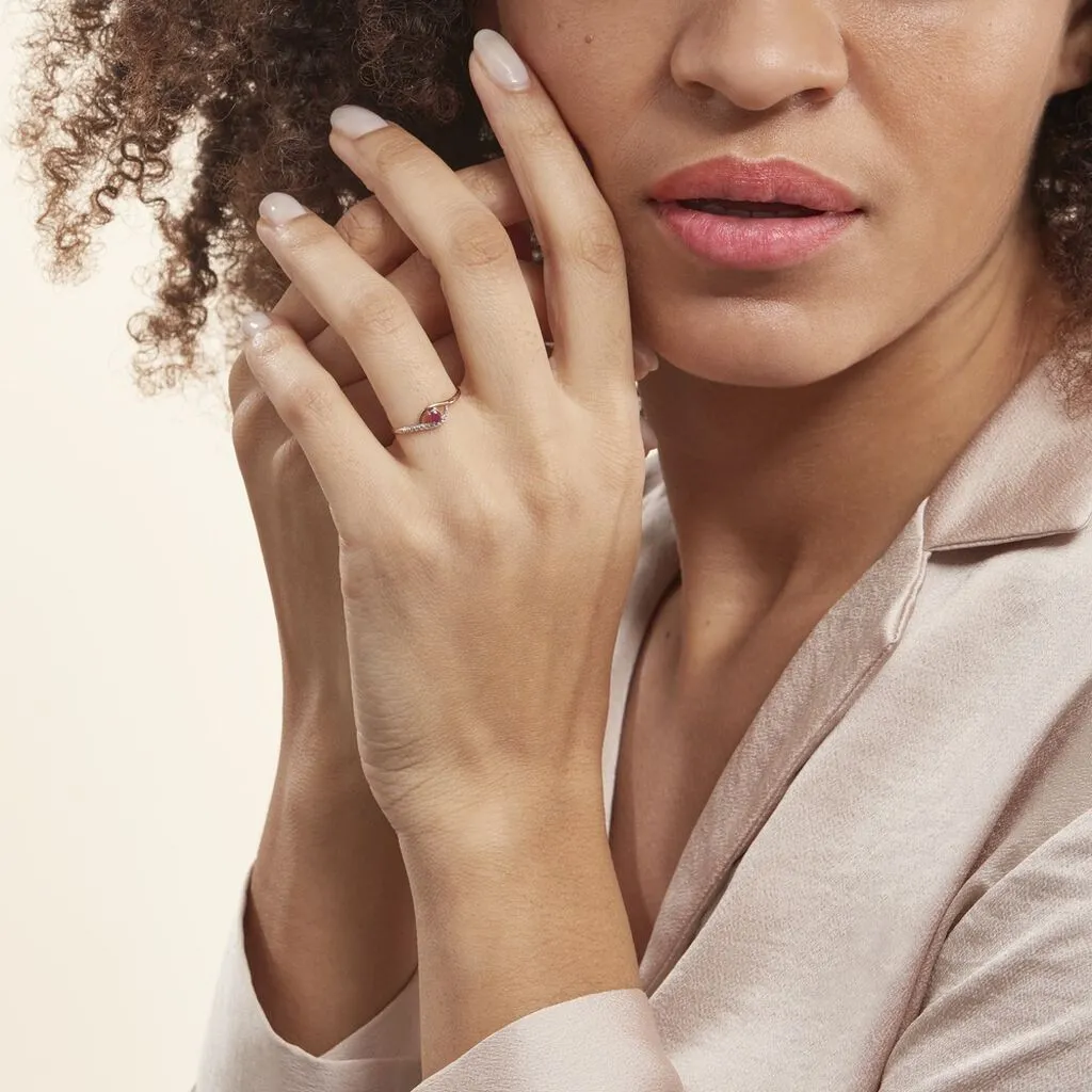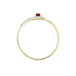 Bague Or Jaune 375/1000 Rubis Rouge 0.13 Cts Serti Griffes Corps De Bague Forme Vague