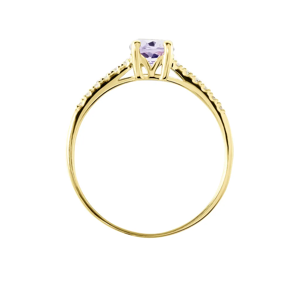 Bague Solitaire Accompagné Or Jaune 375/1000 Améthyste Ronde 0.44cts Serti Griffes