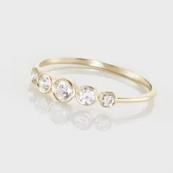 Bague Or Jaune 375/1000 5 Oxydes De Zirconium Ronds Sertis Clos