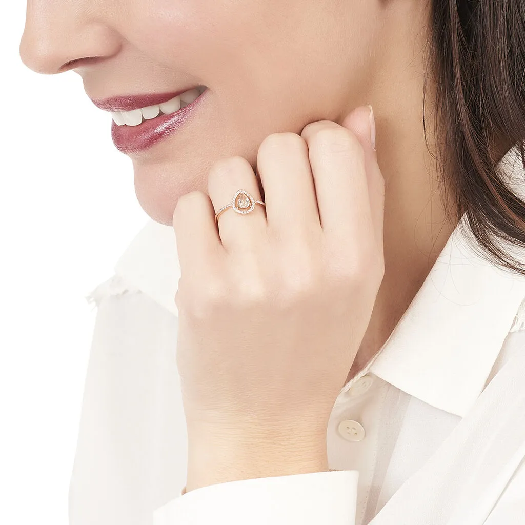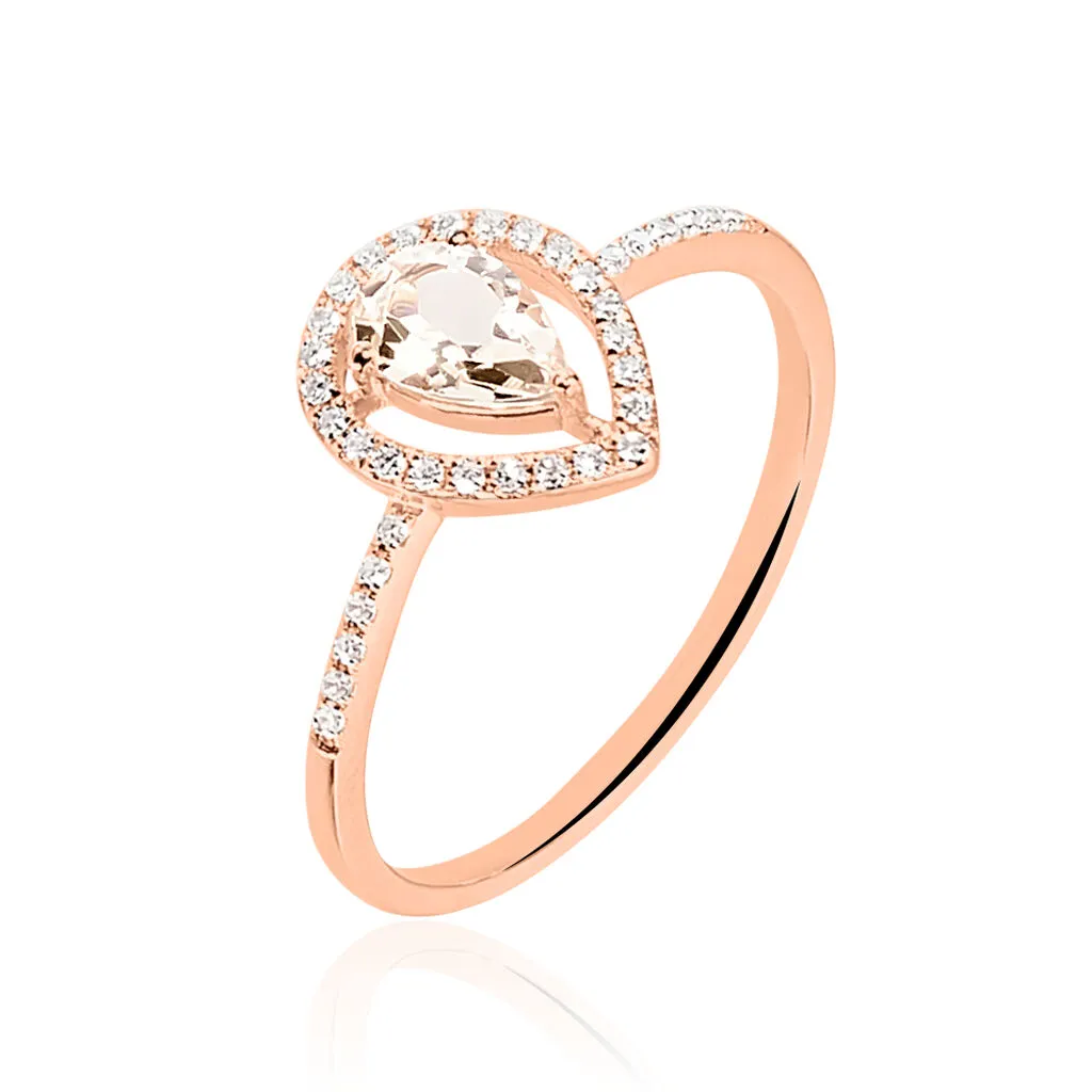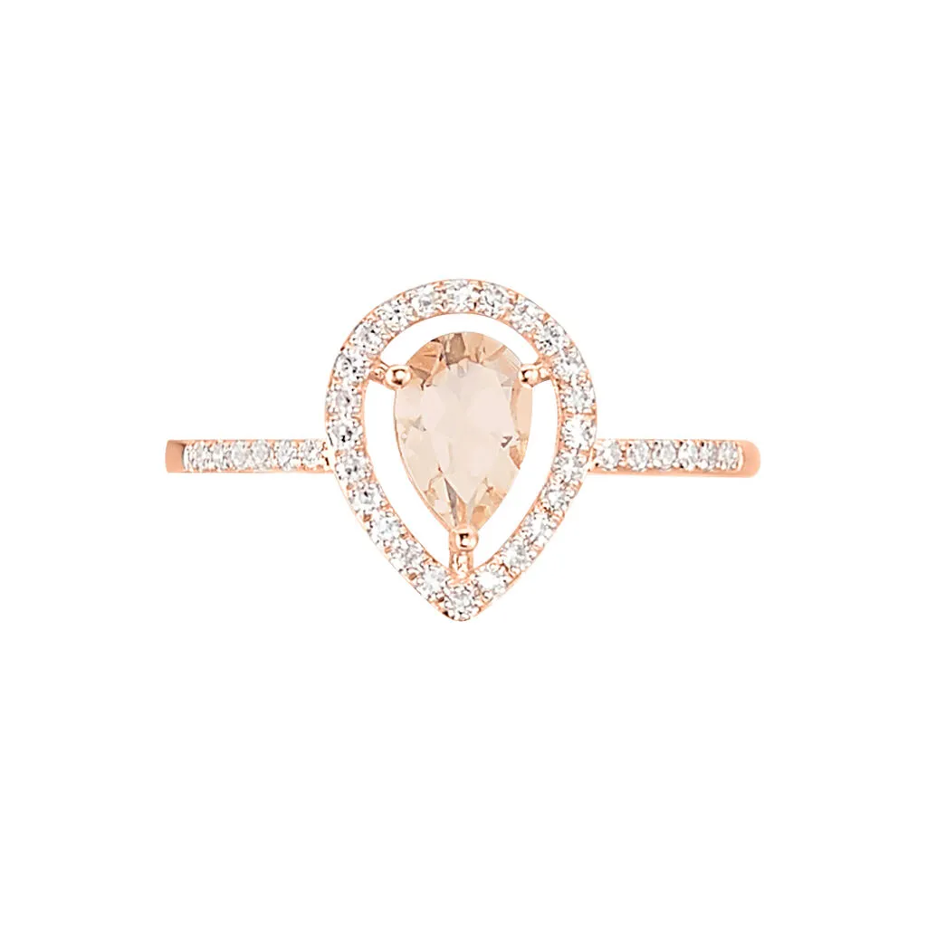 Bague Or Rose 375/1000 Morganite Forme Poire Entourage Diamants