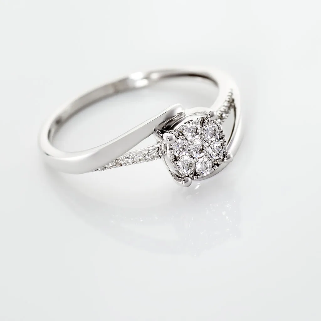 Bague Or Blanc 375/1000 Multipierres Diamants Forme Vrillée Micro Setting