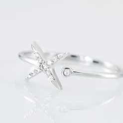 Bague Argent Blanc 925/1000 Ouverte Forme Astral Oxydes De Zirconium