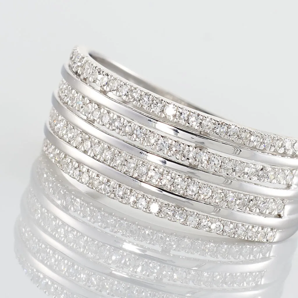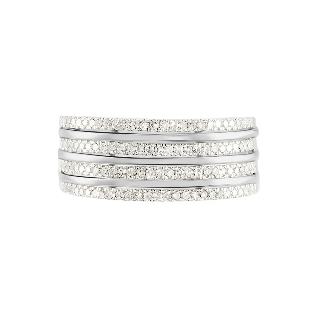 Bague Or Blanc 375/1000 4 Rangs Pavage Diamants