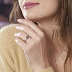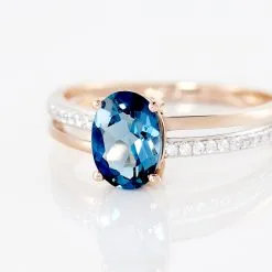 Bague Or Rose 375/1000 Ovale Topaze Bleue London 0.95ct Semi Pavage Oxydes De Zirconium