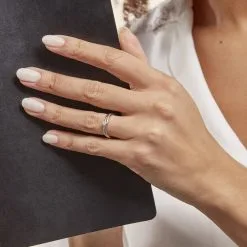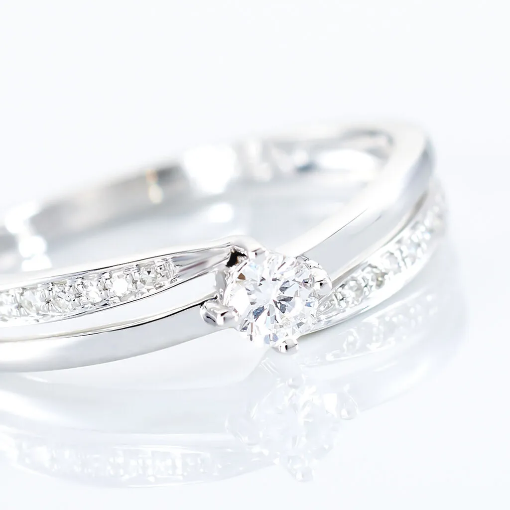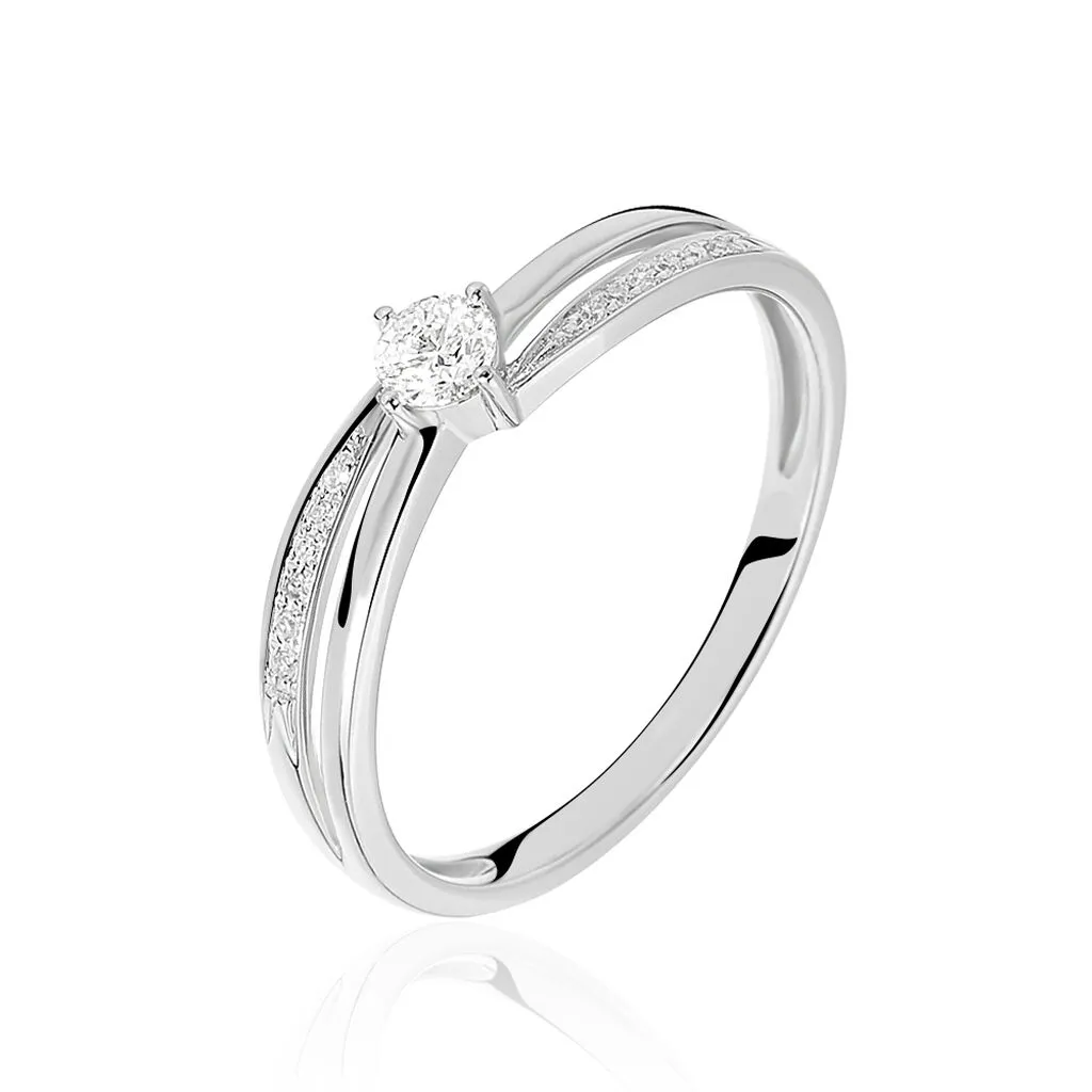 Bague Or Blanc 375/1000 Diamant 0.1cts Central Accompagne Diamants Effet Croise