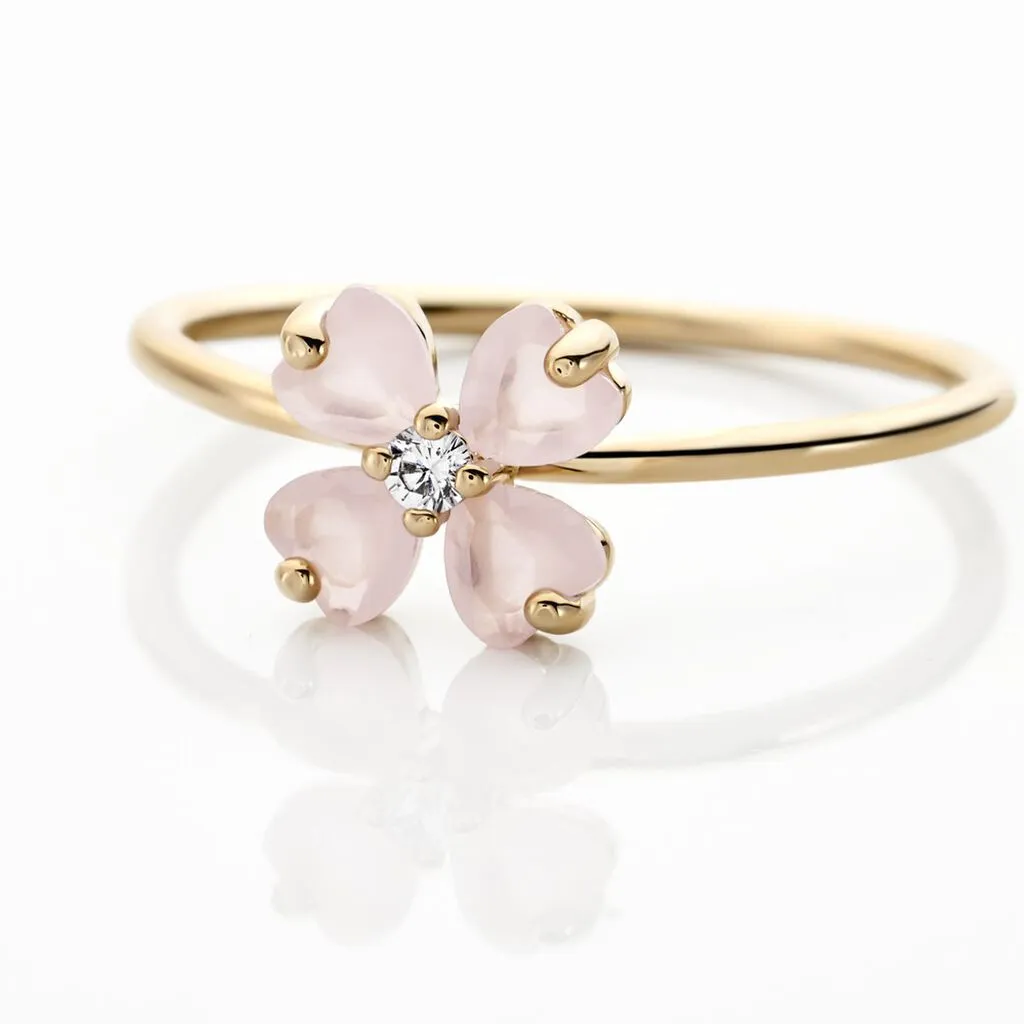 Bague Plaqué Or Jaune Fleur Pierres Roses Centre Oxyde De Zirconium