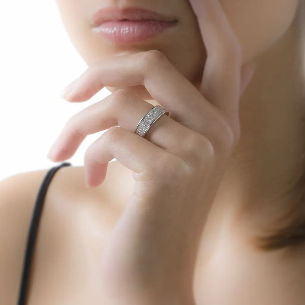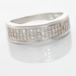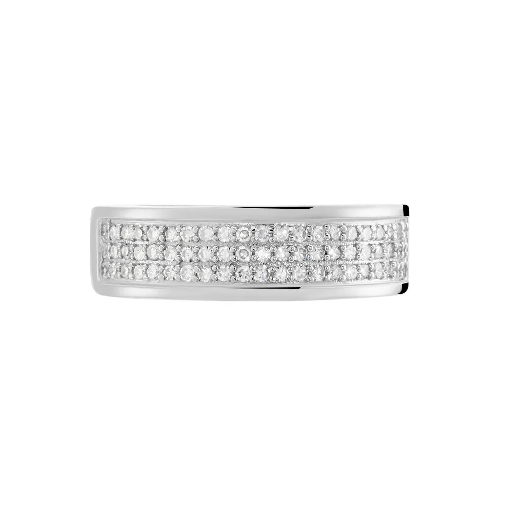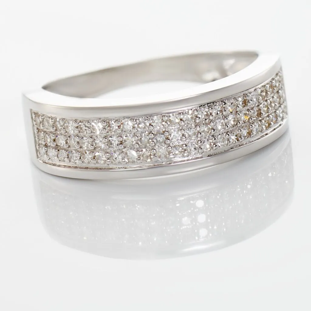 Bague Or Blanc 375/1000 Triple Rangs Pavage Diamants 0.31ct