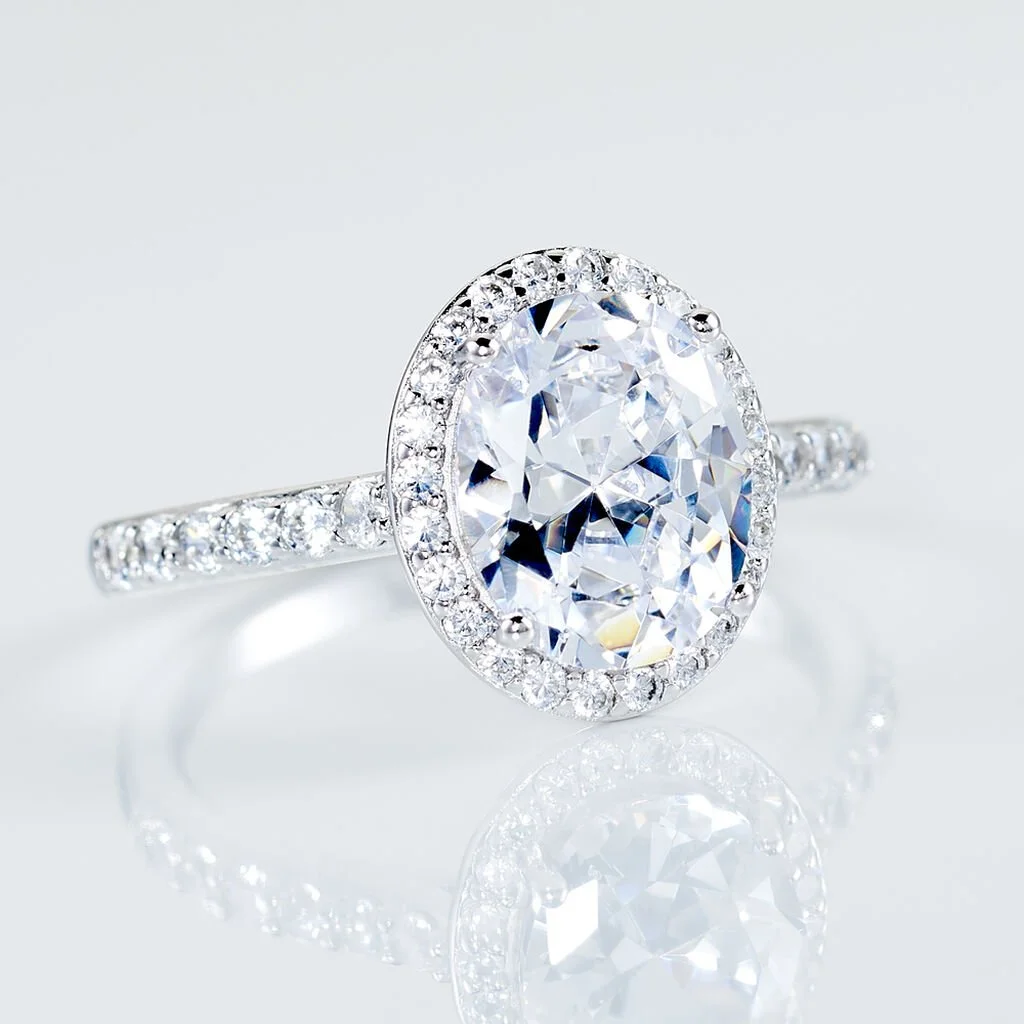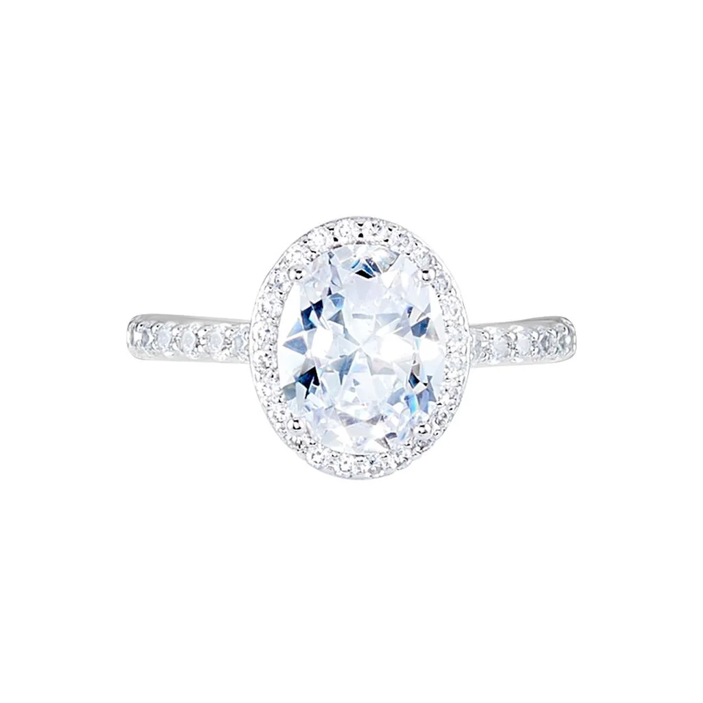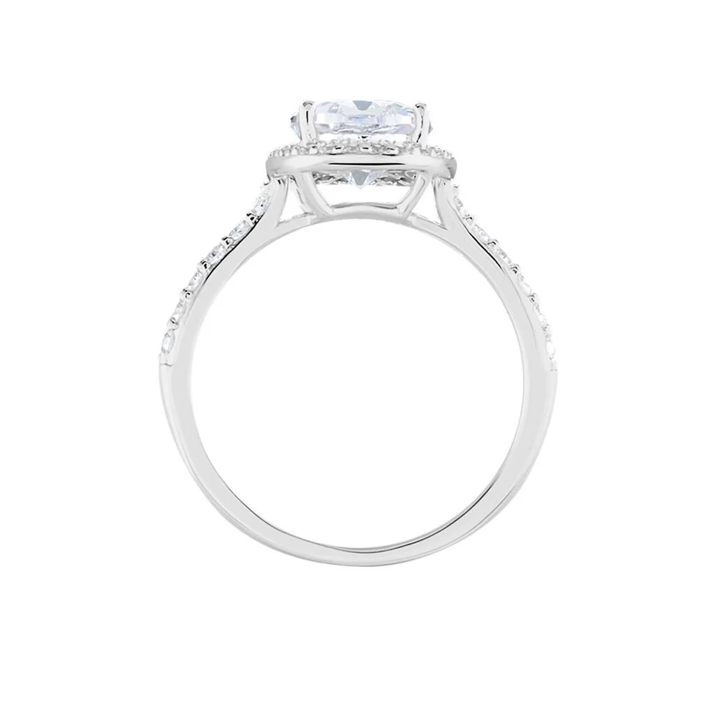 Bague Solitaire Argent 925/1000 Oxyde De Zirconoium Rond Entourage Micro Setting Oxydes De Zirconium