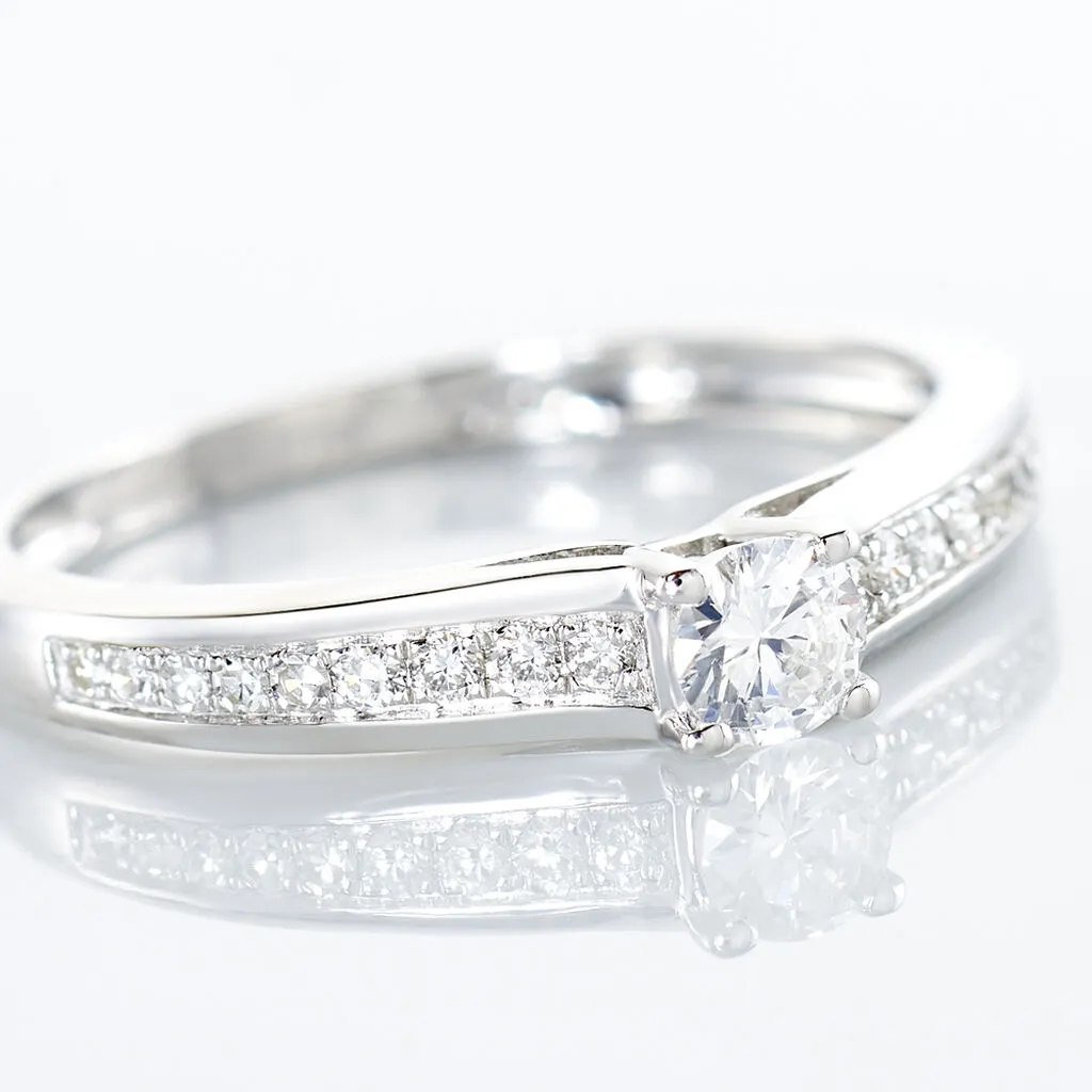 Bague Solitaire Or Blanc 375/1000 Diamant 0.18cts Serti 4 Griffes Corps De Bague Accompagne Diamants