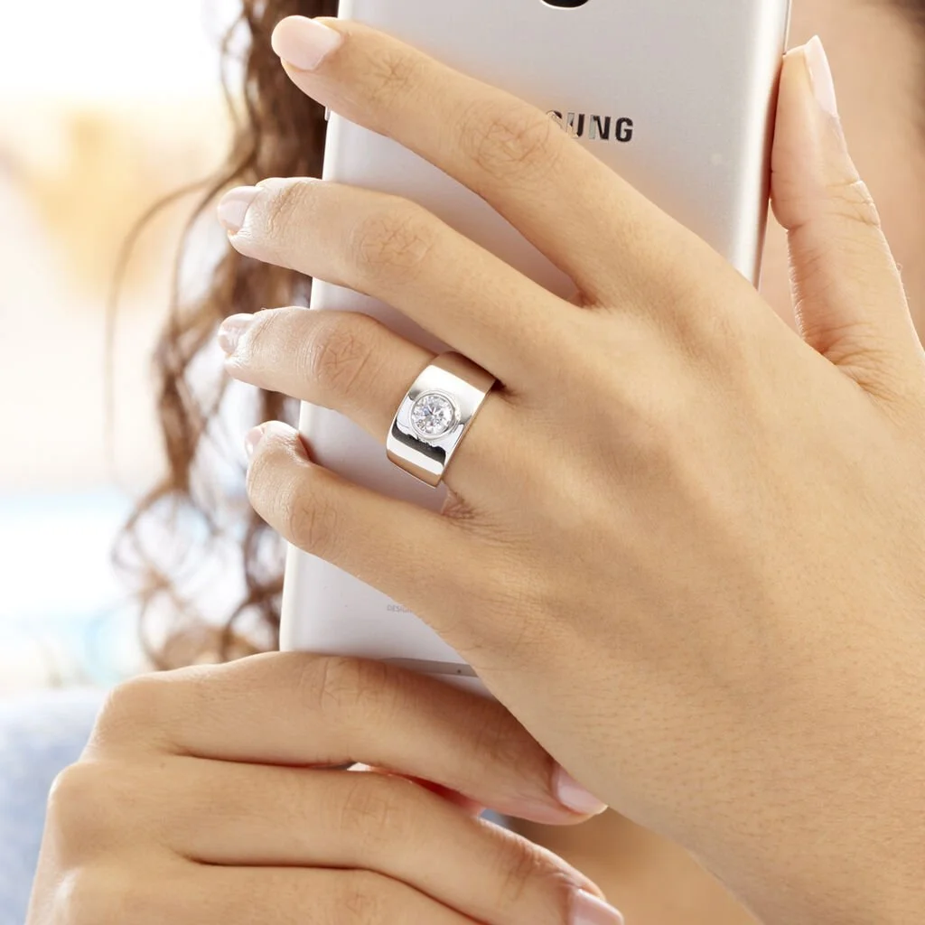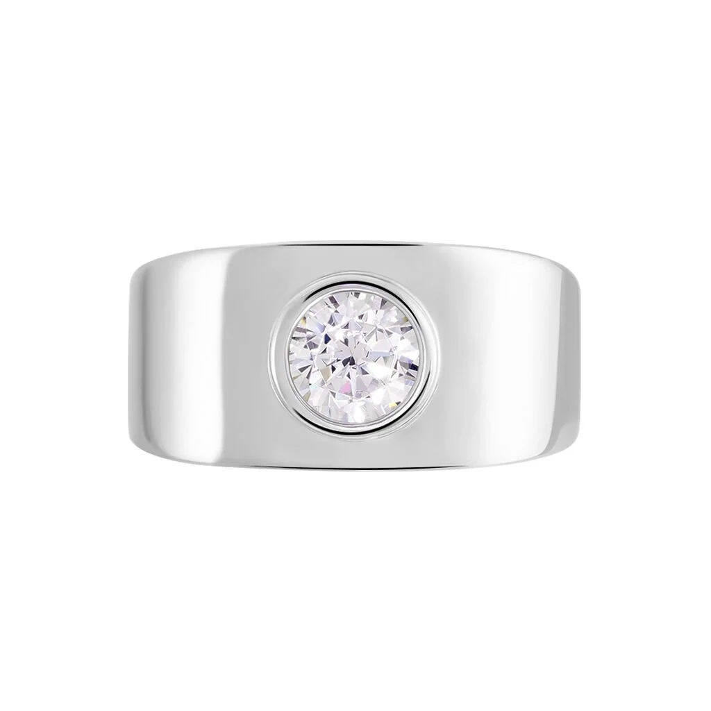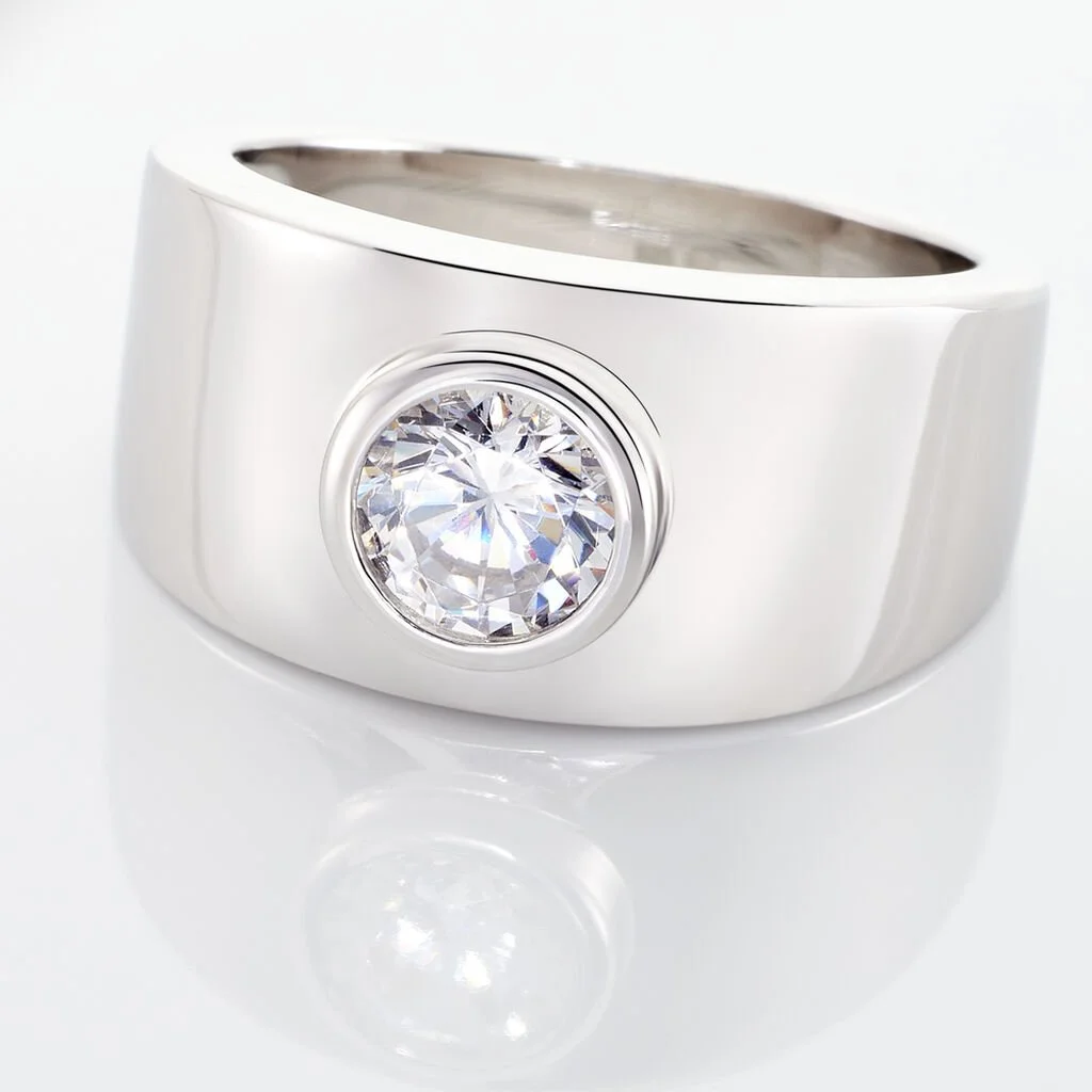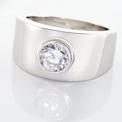 Bague Pleine Argent 925/1000 Solitaire Sertis Clos Oxyde De Zirconium