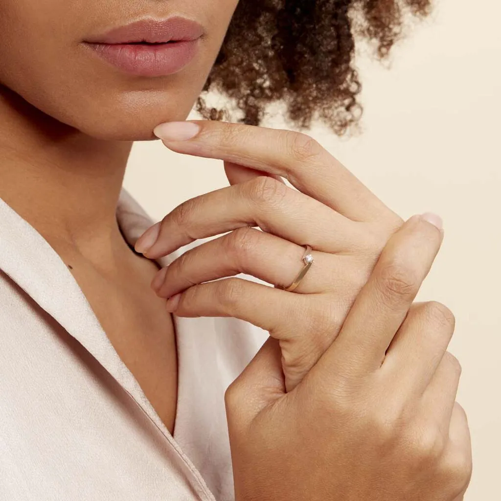Bague Or Bicolore 375/1000 Solitaire Forme Couteau Diamant 0.09 Cts