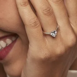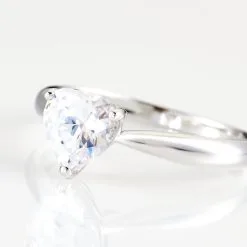 Bague Solitaire Argent Blanc 925/1000 Forme Cœur Sertis Griffes Oxyde De Zirconium
