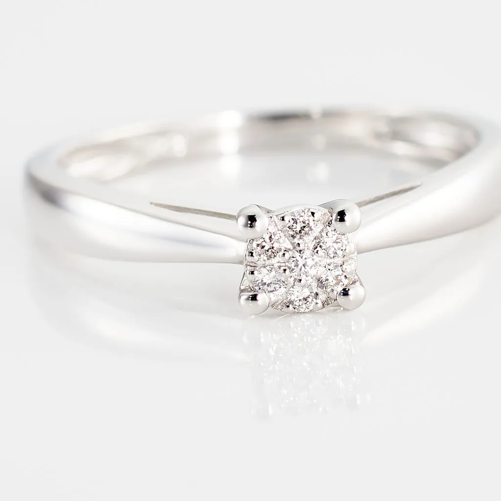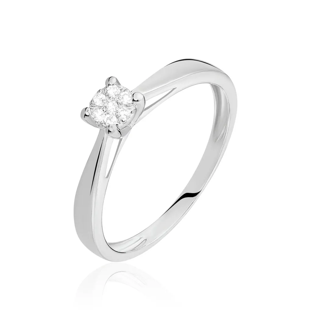 Solitaire Or Blanc 375/1000 Diamants Multi Pierre 0.07cts