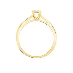 Ce solitaire en or jaune 375/1000ème est le bijou parfait à offrir à votre bien-aimée. Difficile de nier le charme de son anneau ajouré conçu avec délicatesse. Sept diamants forment la pierre centrale qui est maintenue par 4 griffes. Cette bague existe aussi en or blanc.
