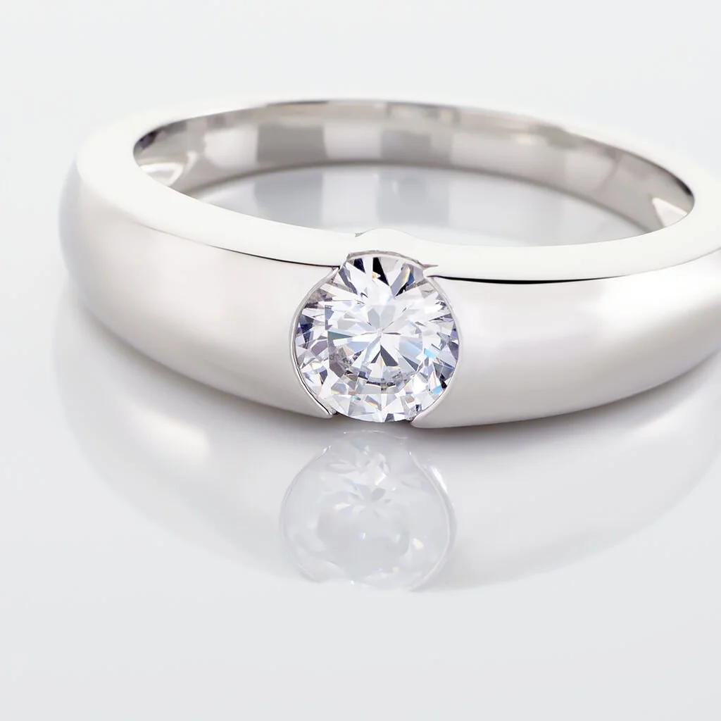 Bague Solitaire Argent 925/1000 Corps De Bague Plein Micro Setting Oxyde De Zirconium