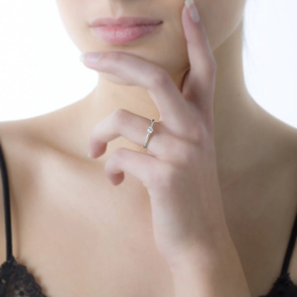 Solitaire Or Blanc 750/1000 Diamant 0.15cts Serti 6 Griffes