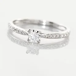 Solitaire Or Blanc 750/1000 Diamant Central 0.2cts Serti Griffes Accompagnes Diamants