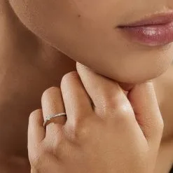 Vous serez conquise par la beauté et la finesse de cette bague solitaire en or blanc 750/1000ème. Elle arbore un design classique et raffiné qui se marie aisément avec toutes vos tenues. Sa pierre centrale 0,1 carat sertie griffes est accompagnée d’autres diamants incrustés sur le corps de bague, accentuant son éclat. Ce modèle est aussi proposé en or jaune et rose.