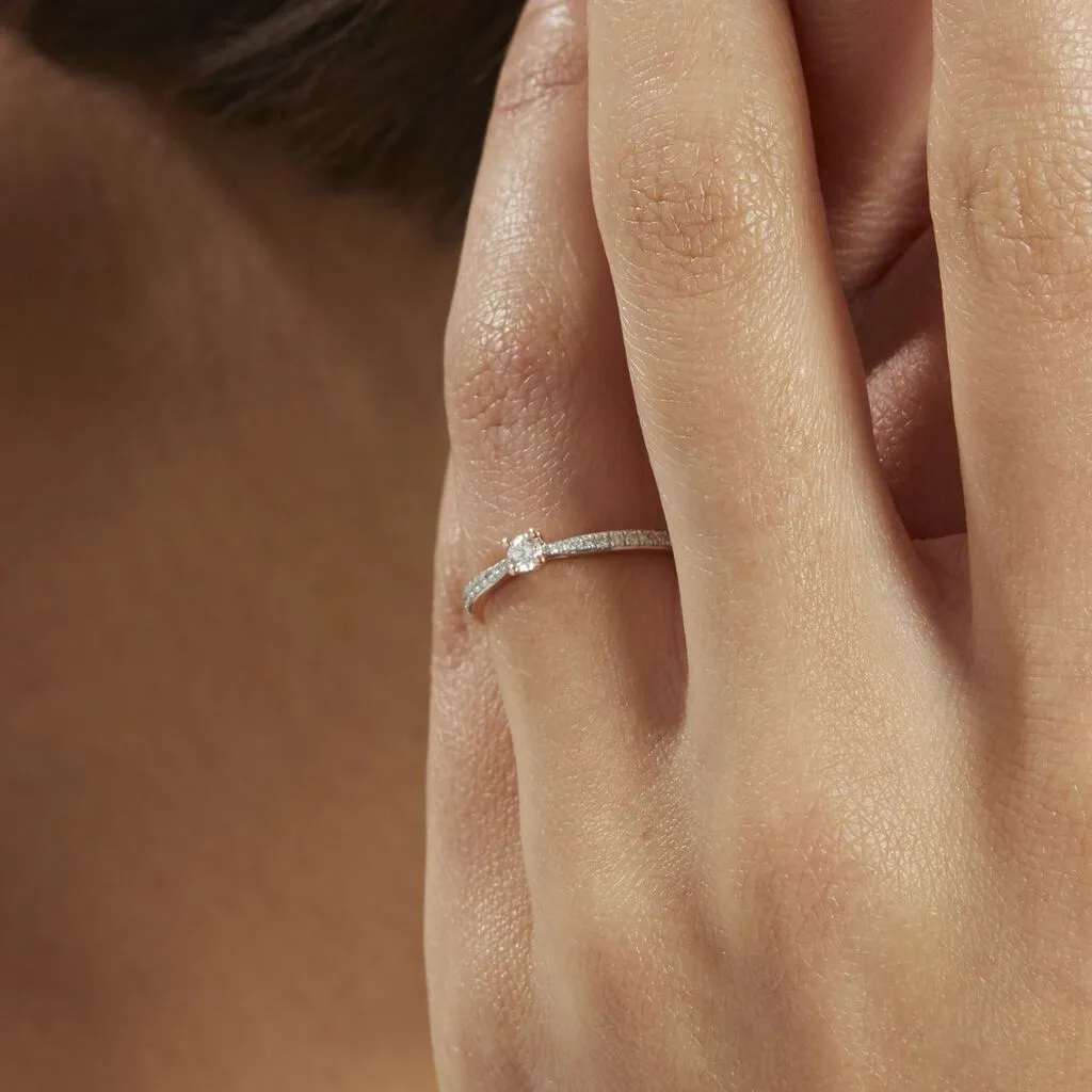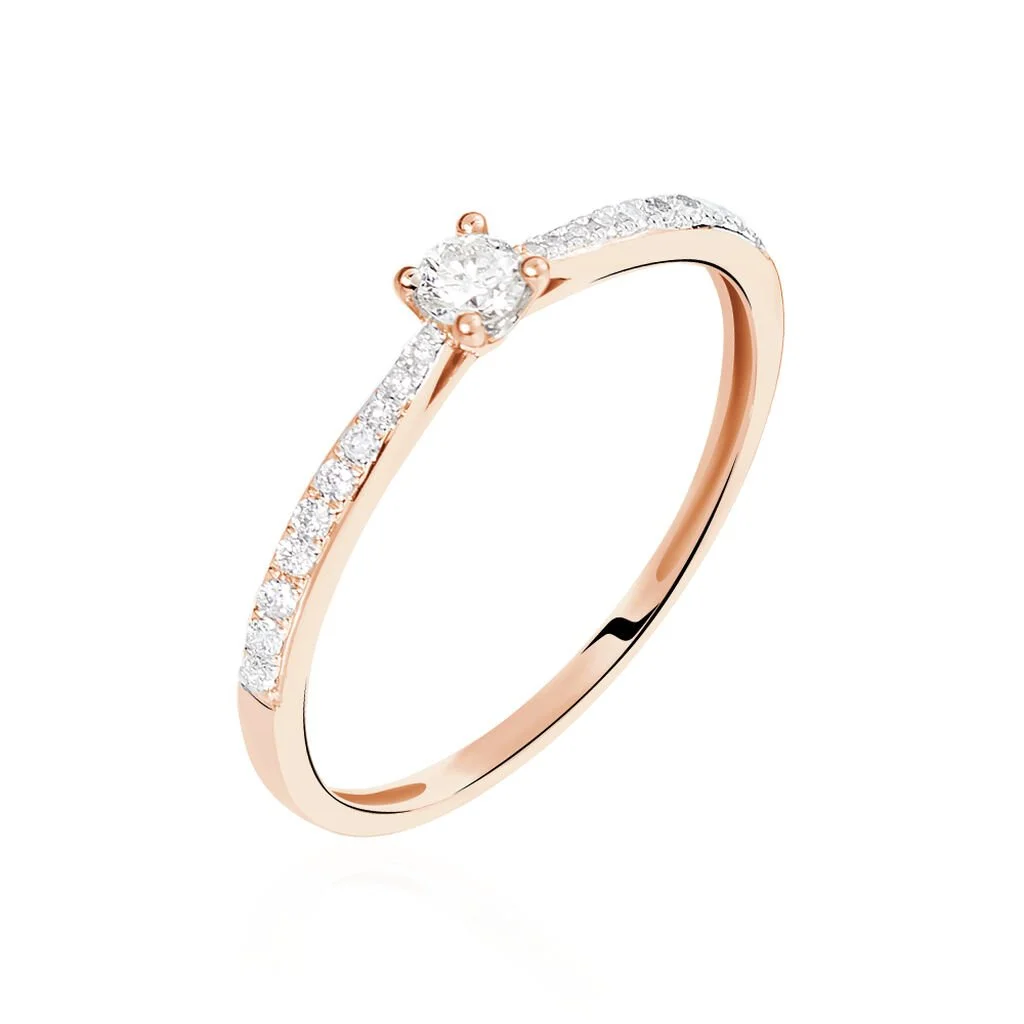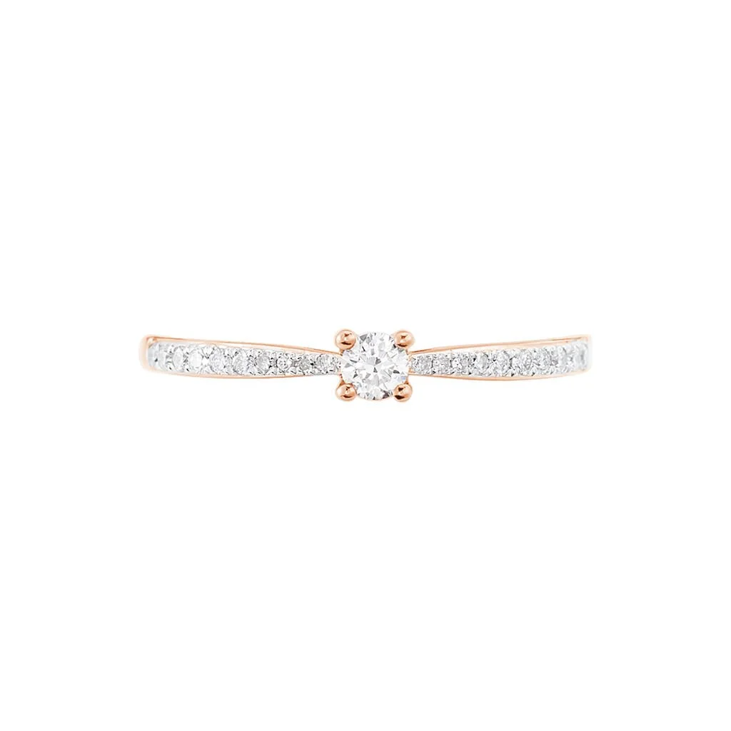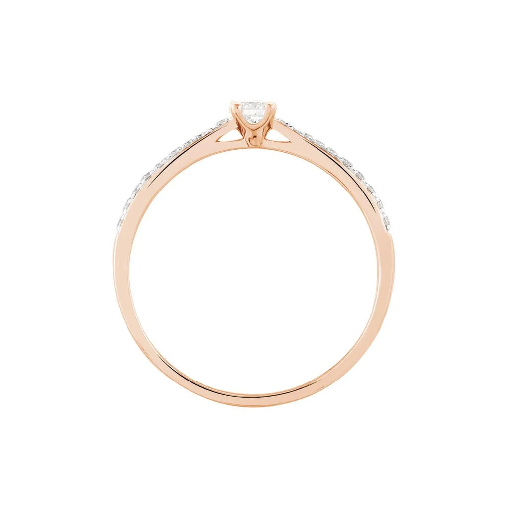 Solitaire Or Rose 375/1000 Diamant Central 0.1cts Serti Griffes Accompagne Diamants