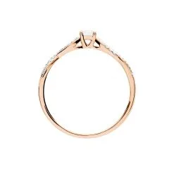 Solitaire Or Rose 750/1000 Diamant Central 0.15cts Accompagne Diamants Corps De Bague Entrelace
